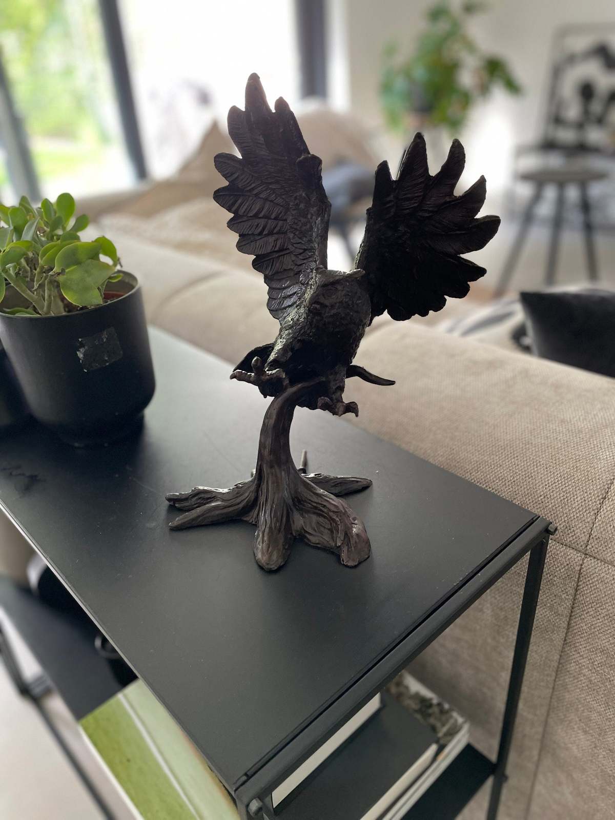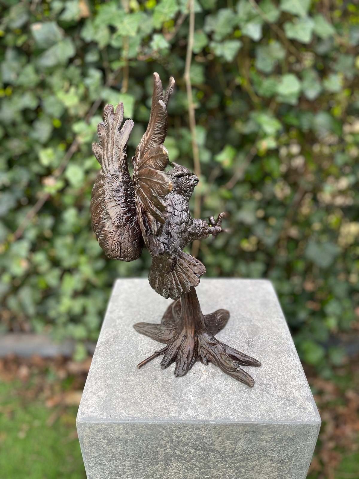 Bronze owl sculpture with spread wings and lifelike details. A bold and graceful piece to enrich your indoor or outdoor nature-themed space.