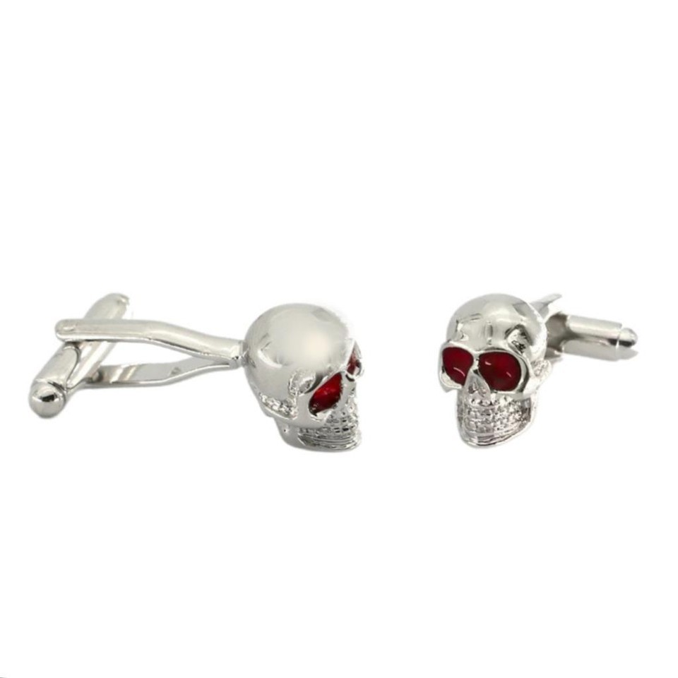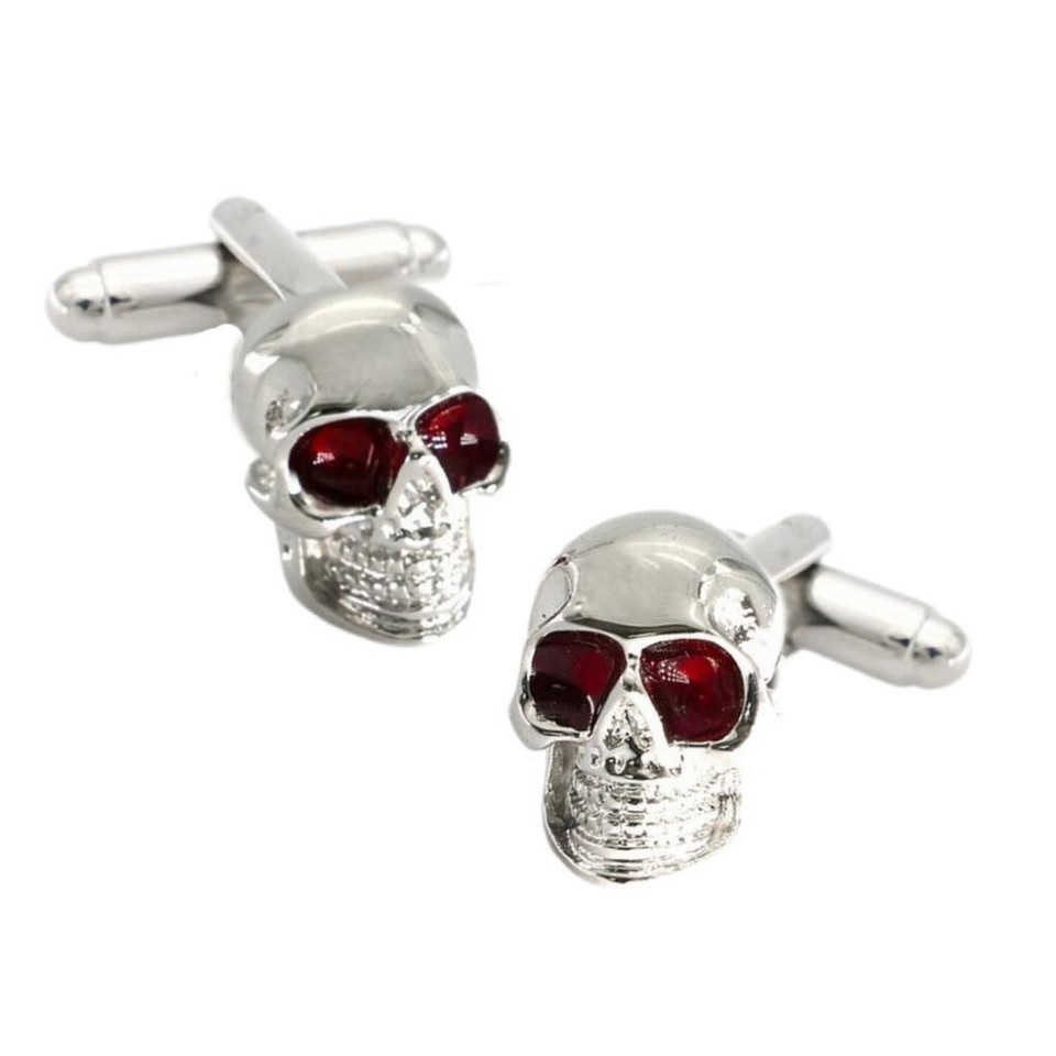 Skull Cufflinks Silver Color Red Eyes and 50 similar items