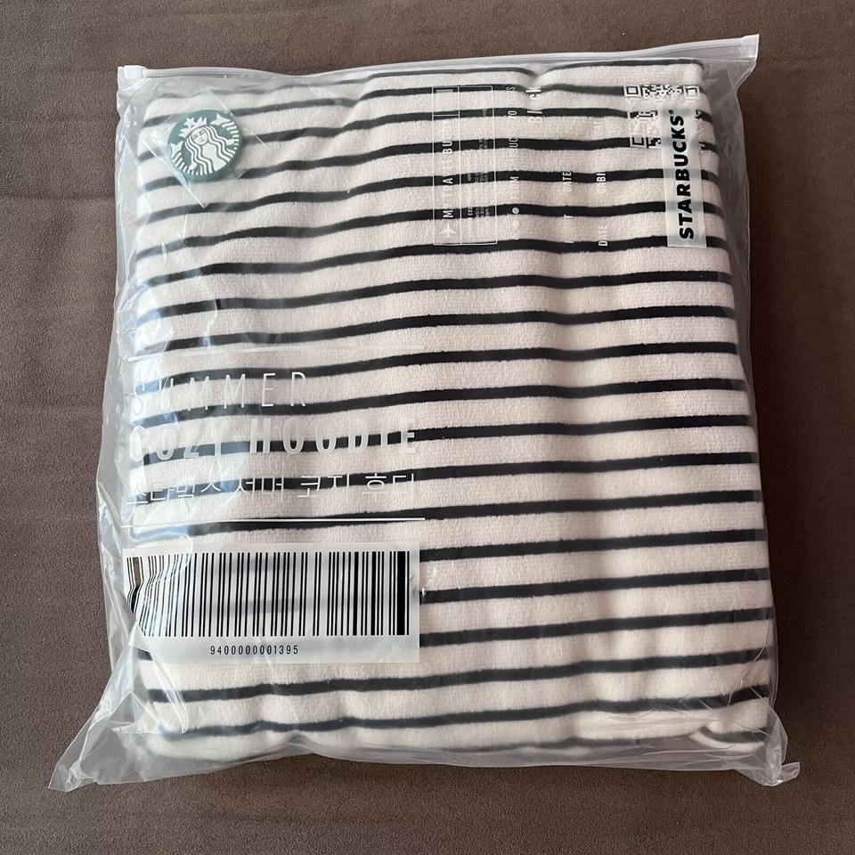 New Korea Starbucks Summer Black Stripe Cozy Pool Hoodie Terry Cloth Coverup