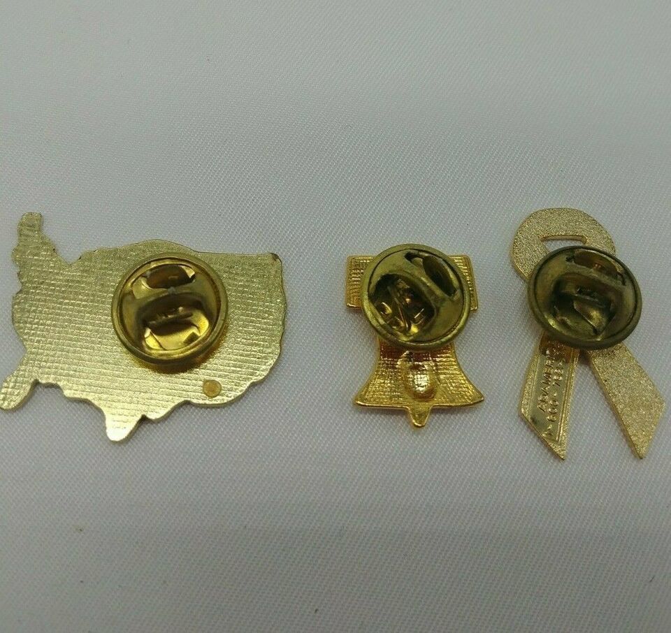 Lot Of 3 American Flag Bell Hat Lapel Pin
