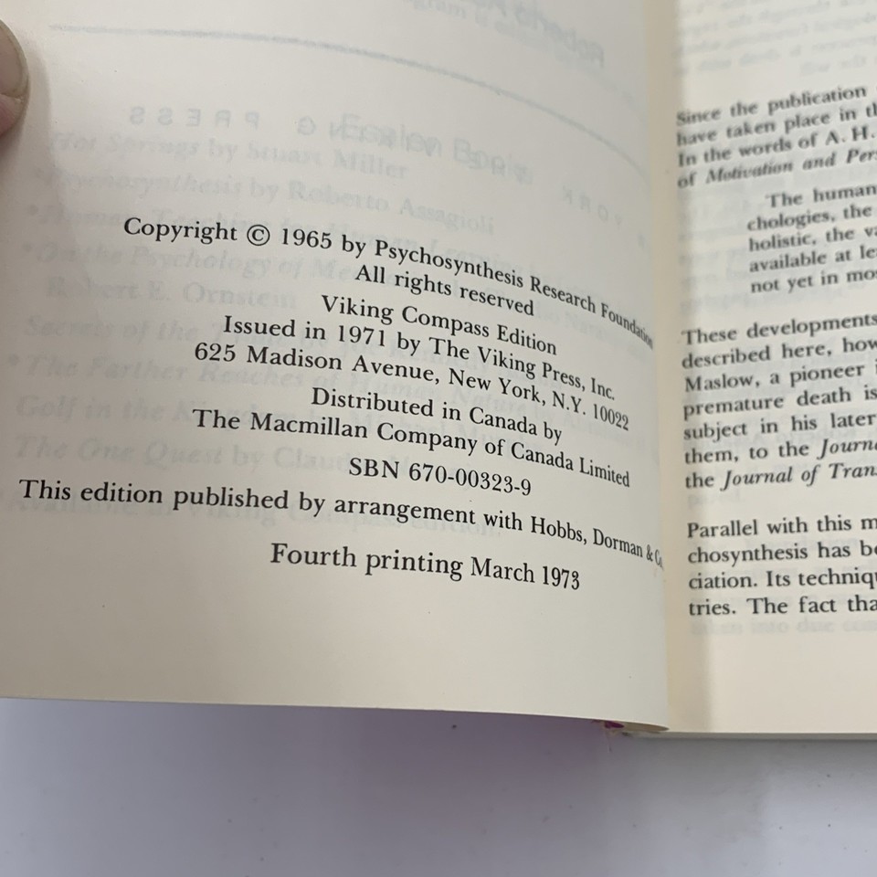 Psychosynthesis: A collection of basic writings By Roberto Assagioli 1965