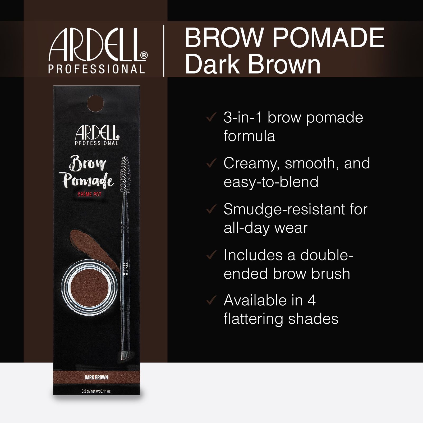 Ardell Brow Pomade - Soft Black, Smudge-Proof Long-Lasting Eyebrow Makeup, with