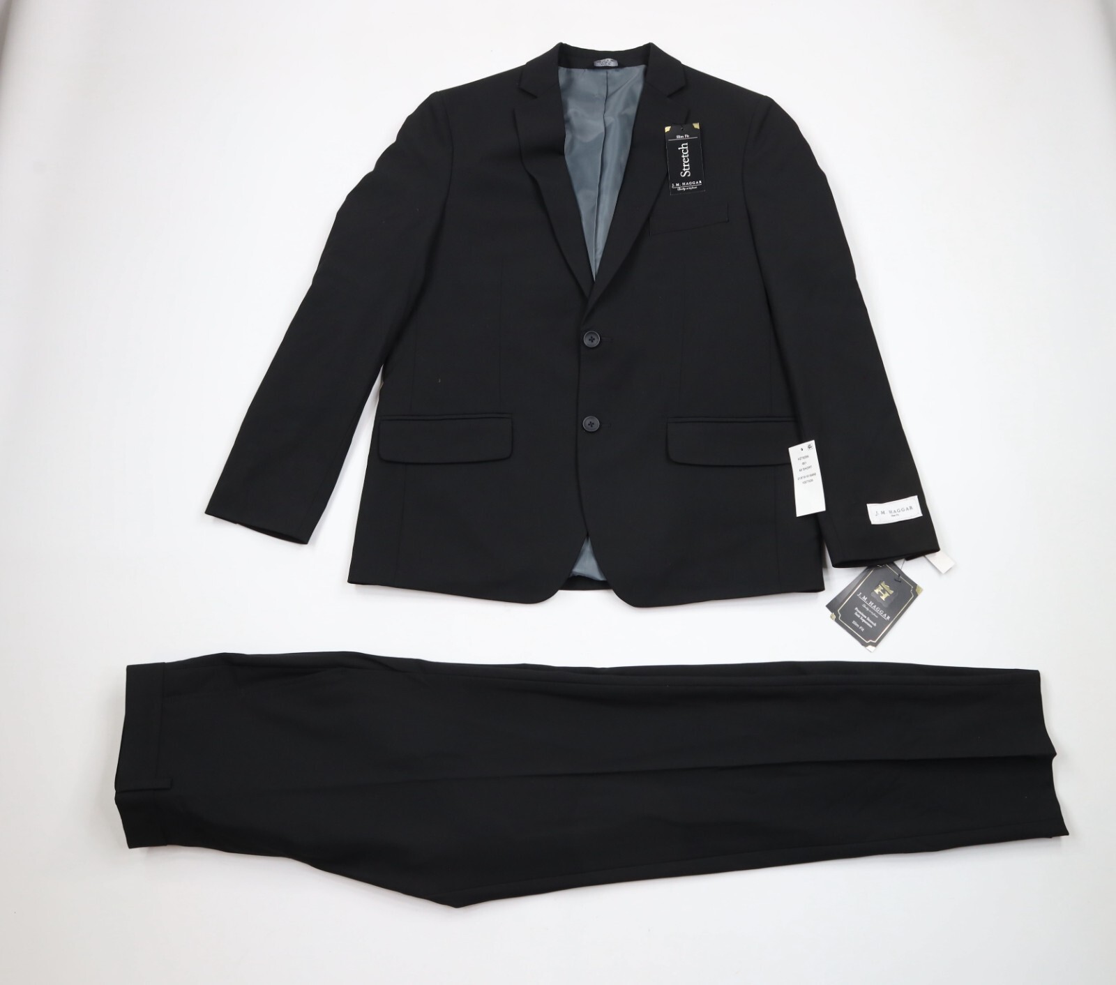 New Streetwear Mens Size 40 Short Slim Fit 2 Piece Stretch Wedding Suit Black