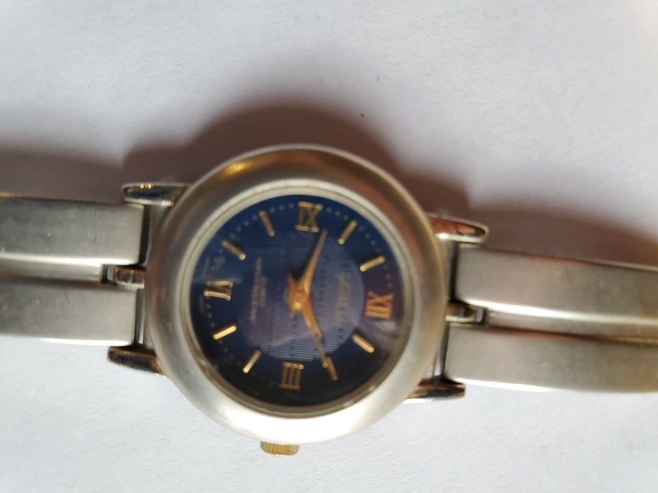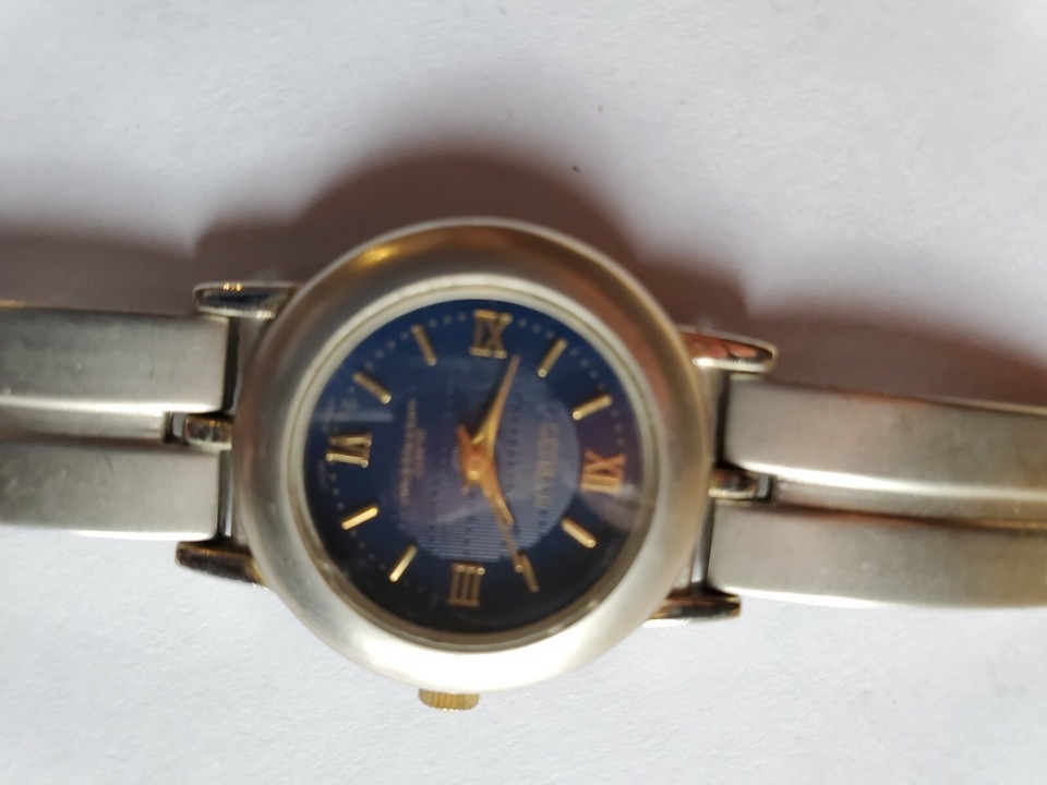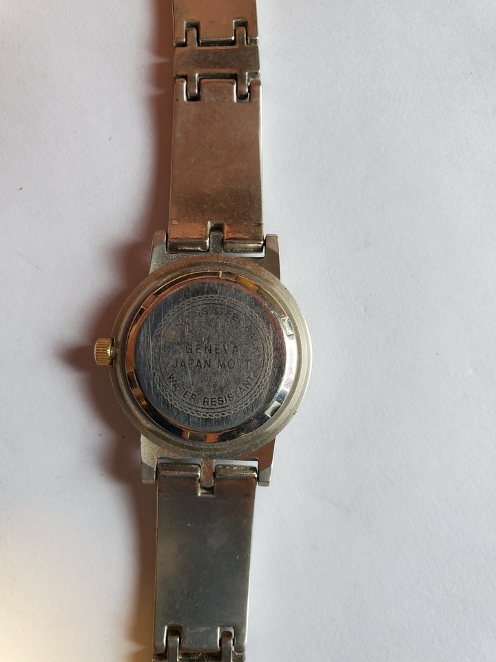 PRE-OWNED STAINLESS STEEL GENEVA WOMENS QUARTZ WATER RESISTANT WRIST WATCH