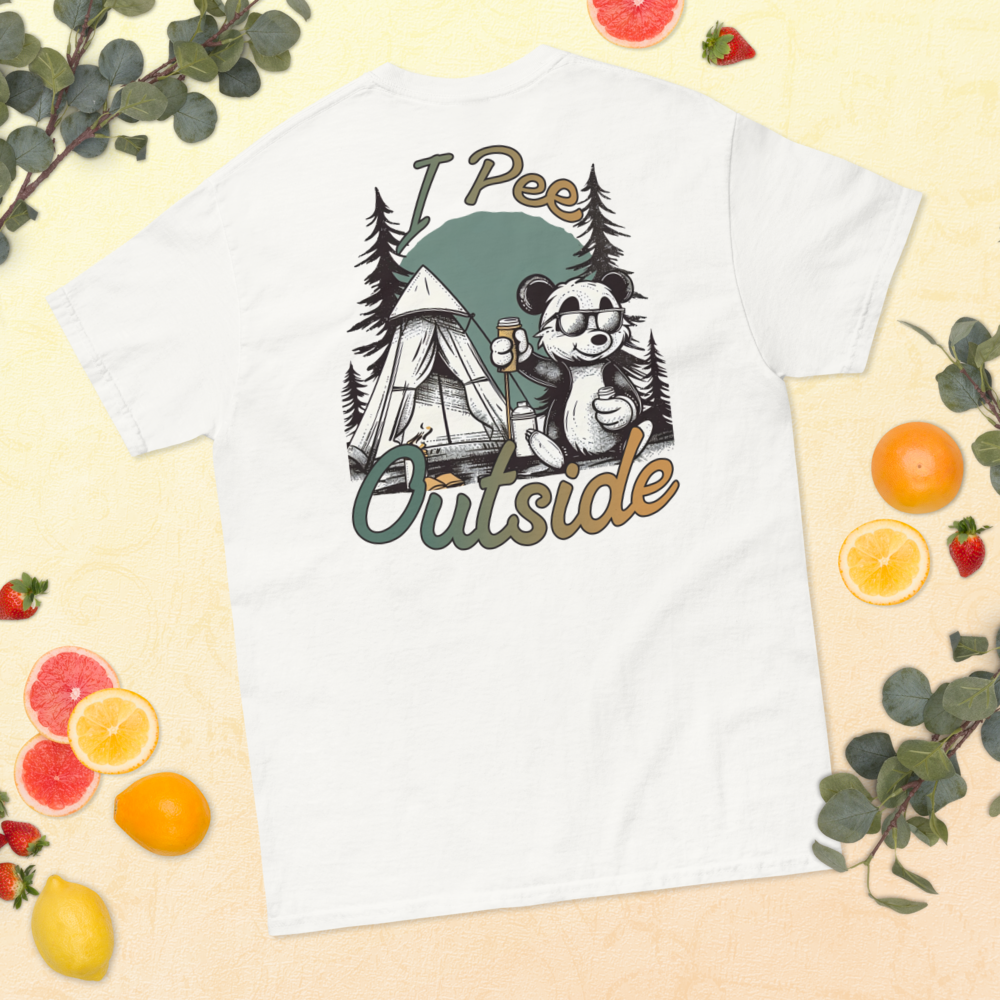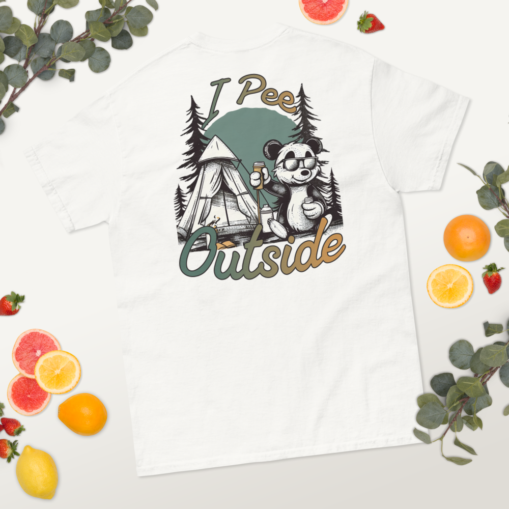 Unisex Classic Tee – “I Pee Outside” (Back Print, White)