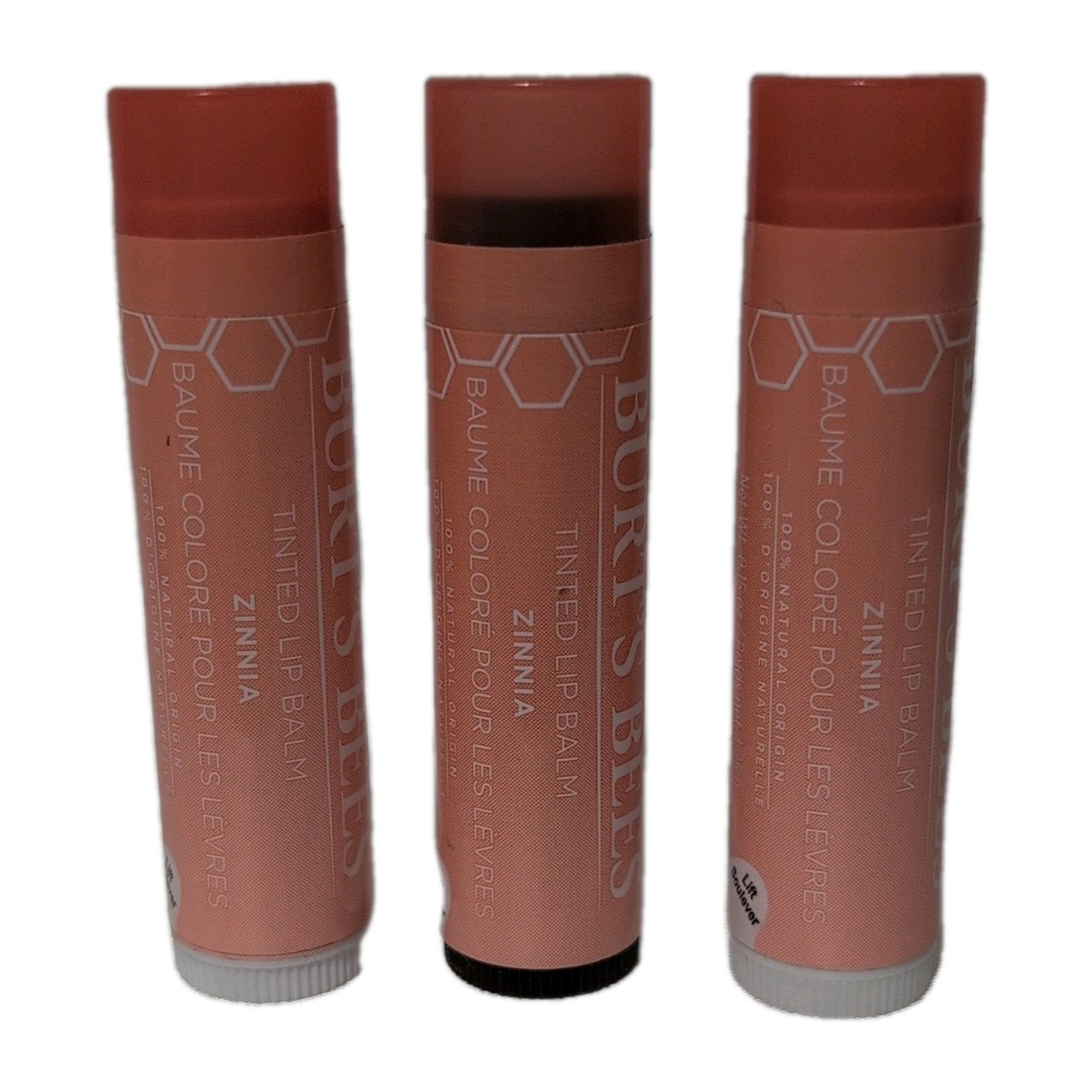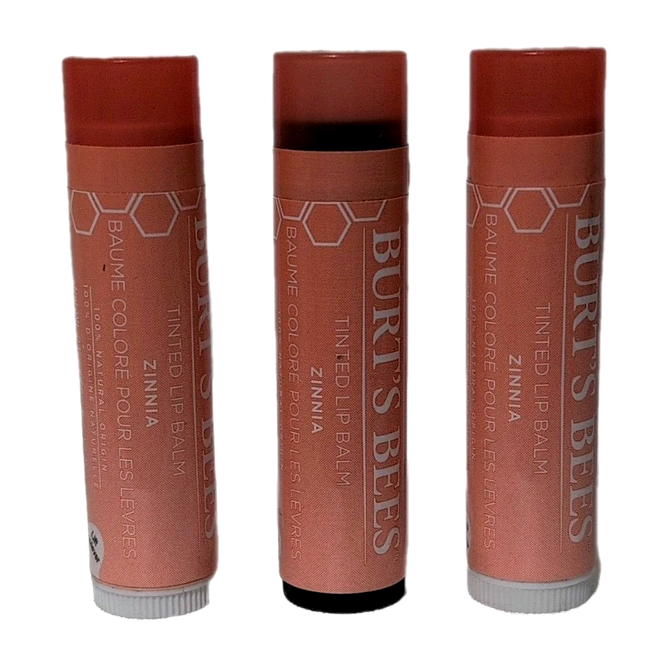 3 Pack Burt’s Bees Tinted Lip Balm – ZINNIA – 100% Natural – NEW Sealed