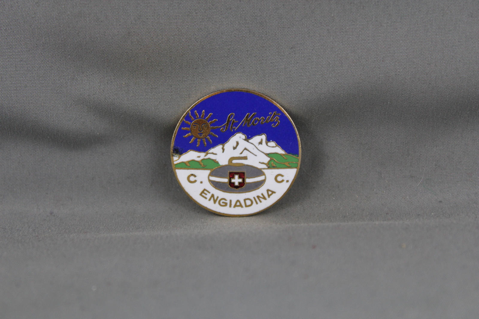 Vintage Curling Pin - St. Mortiz Curling Club - Inlaid Pin