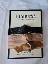 The Hair Edit Vegan Leather Modern Hair Tie Bows 3 Pack Black Cream Tan New