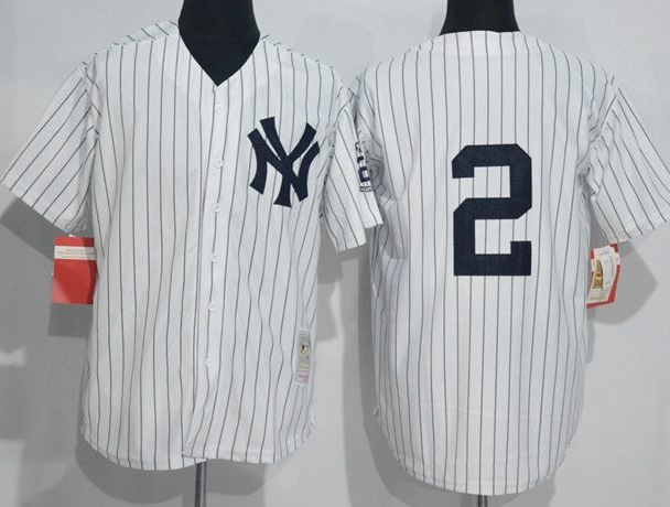 Yankees #2 Derek Jeter Home Jersey Old Style Uniform White Stripe