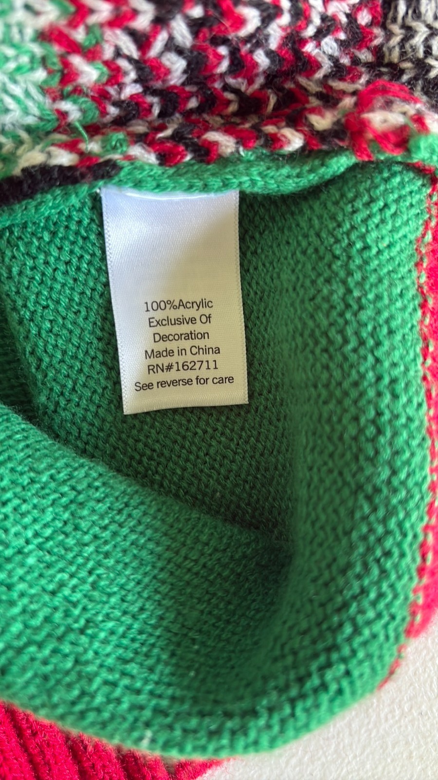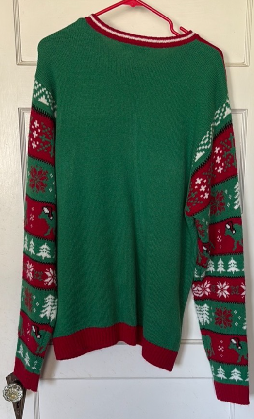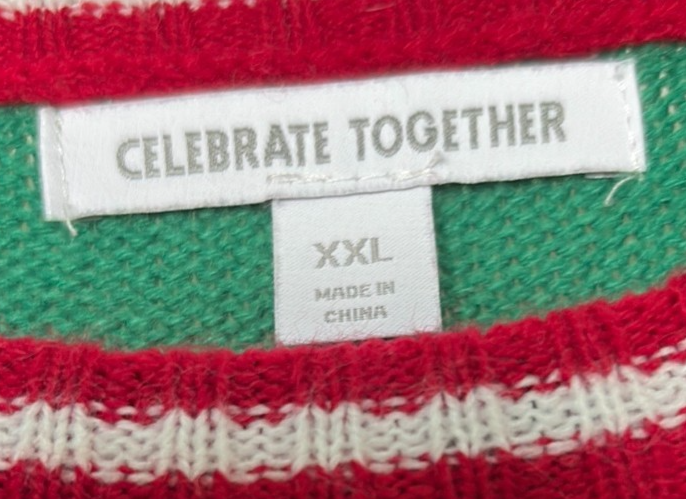 Celebrate Together Women's Winter Holiday Cow Sweater Size XXL. Embrace the festive spirit with this playful appliqued cow sweater. Featuring vibrant red and green colors, it's a fun addition to your holiday wardrobe. Armpit to armpit measures 25?. Shoulder to hem is 30?. Sleeves measure 32? from the top of the shoulder seam to hem. Very Good Used Condition - See photos for further details.