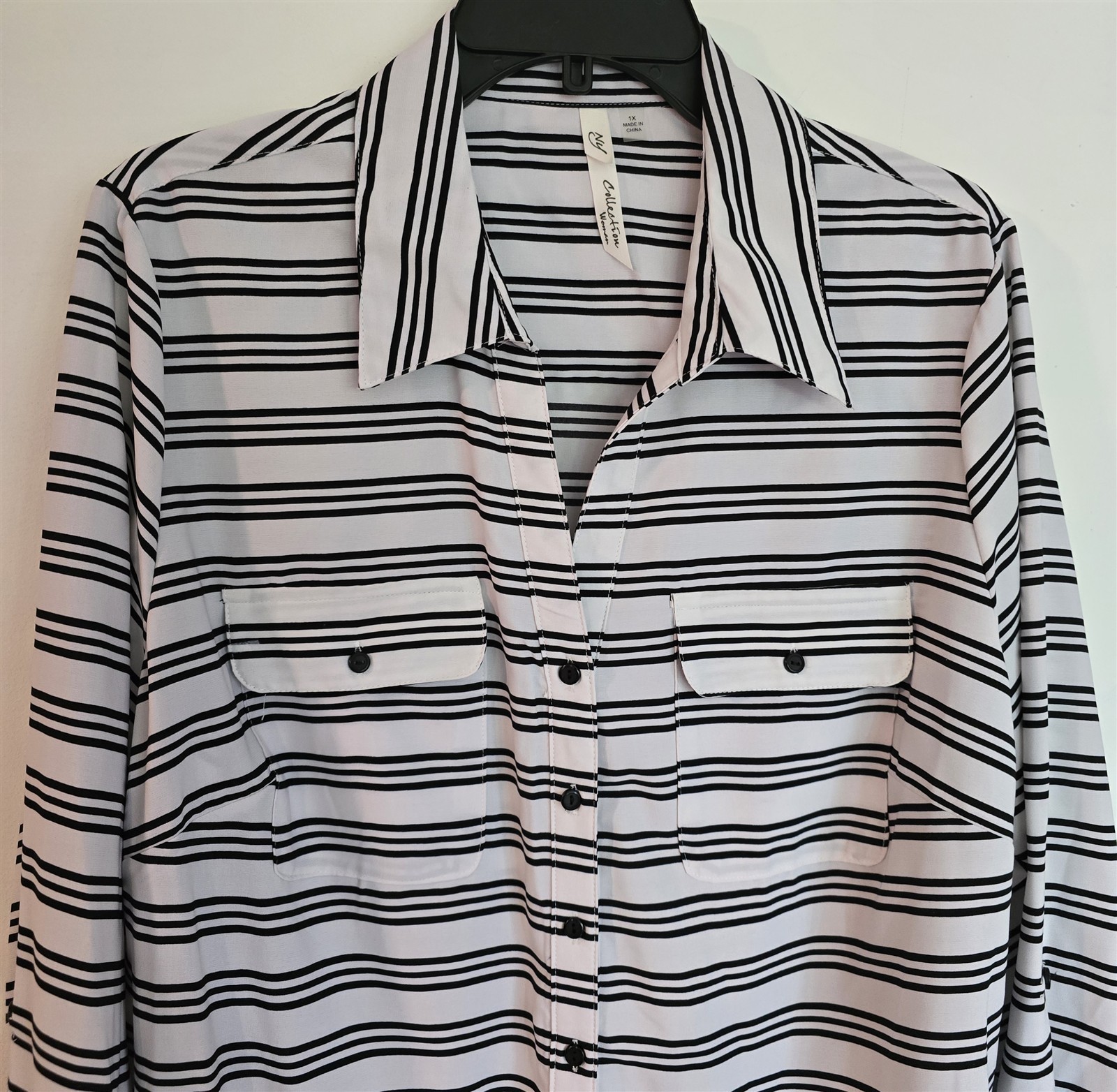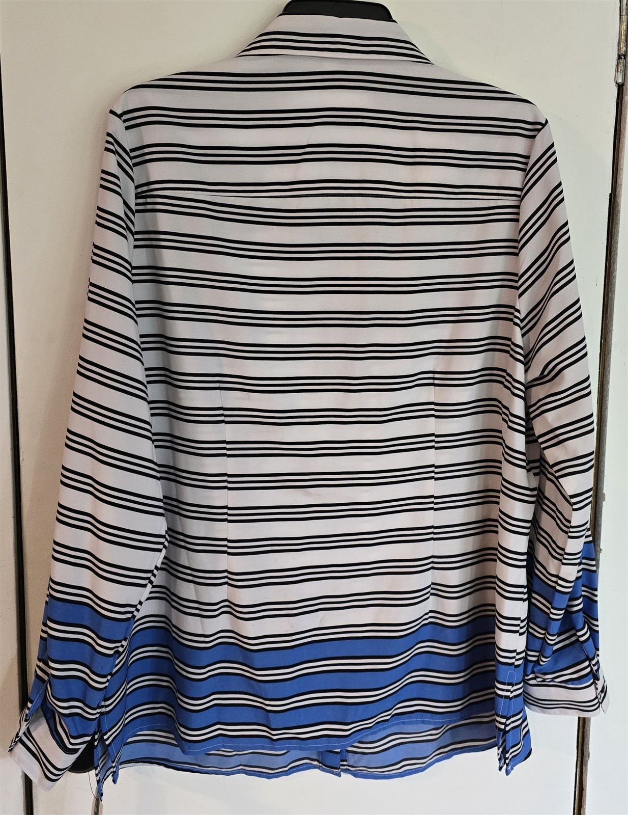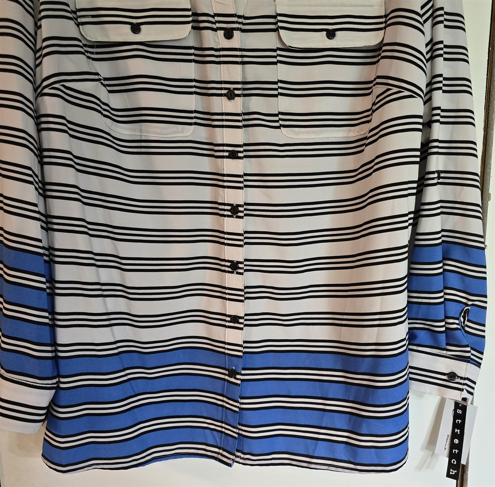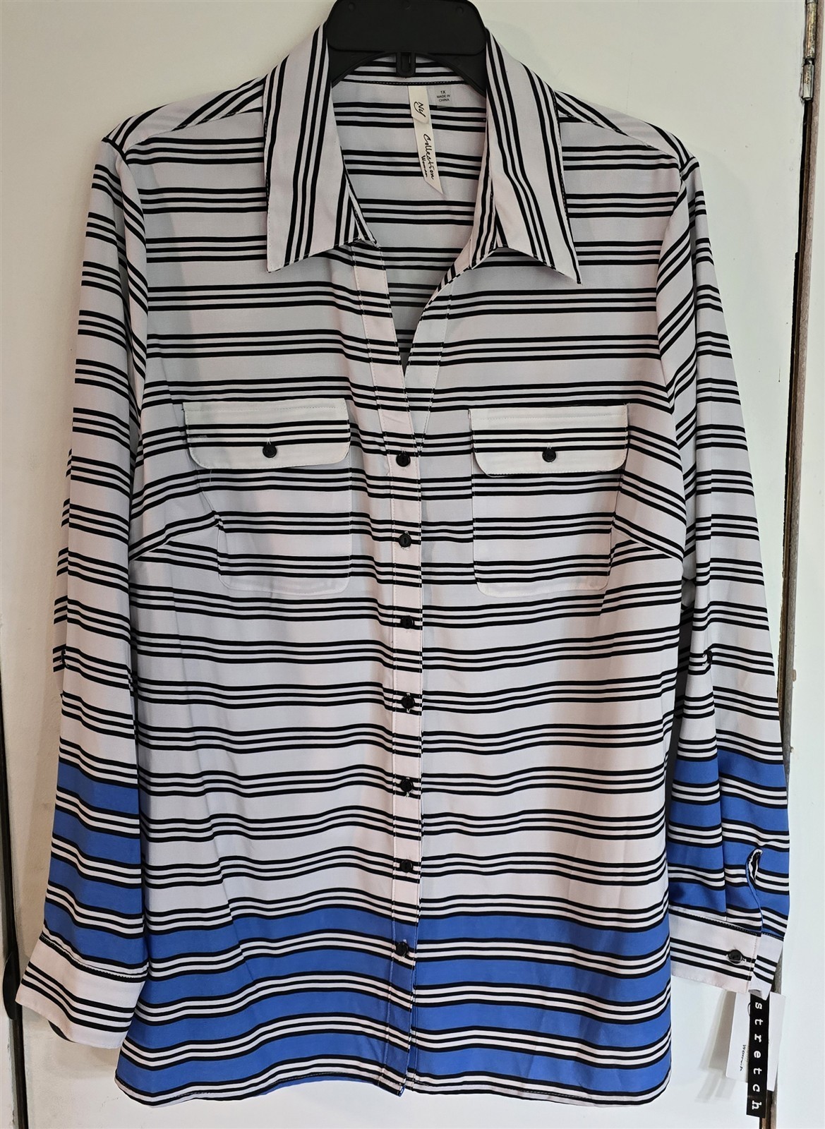 NWT Womens Plus 1X NY Collection White/Black/Blue Stripes Shirt Top Blouse