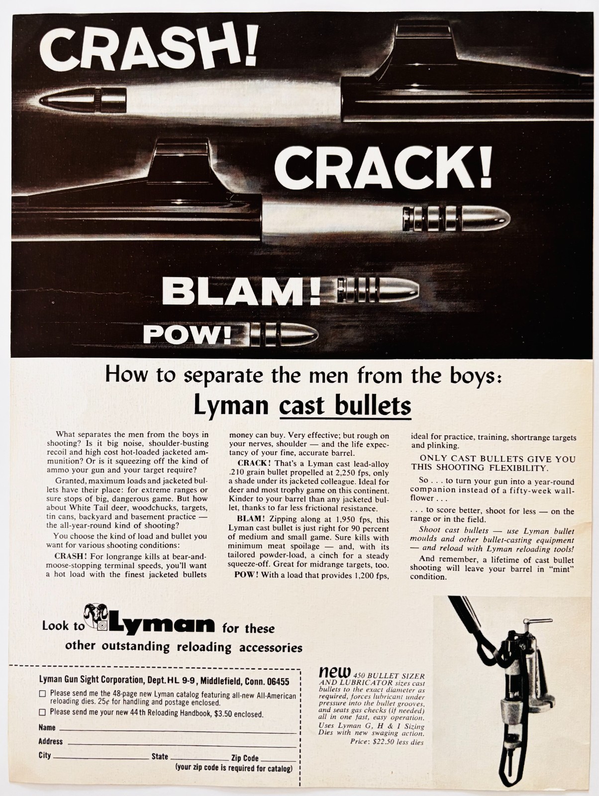 1969 Lyman Gun Sight Cast Bullets Advertisement Hunting Firearms Vintage F15W