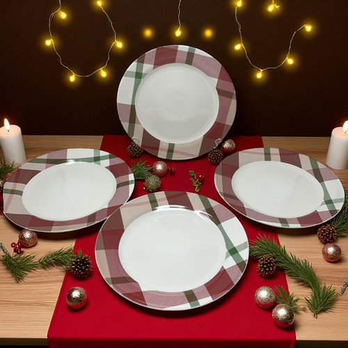 Classic Plaid Design: The timeless plaid pattern in vibrant hunter green paired with earthy brown tones creates a beautiful contrast that complements any dining setting.