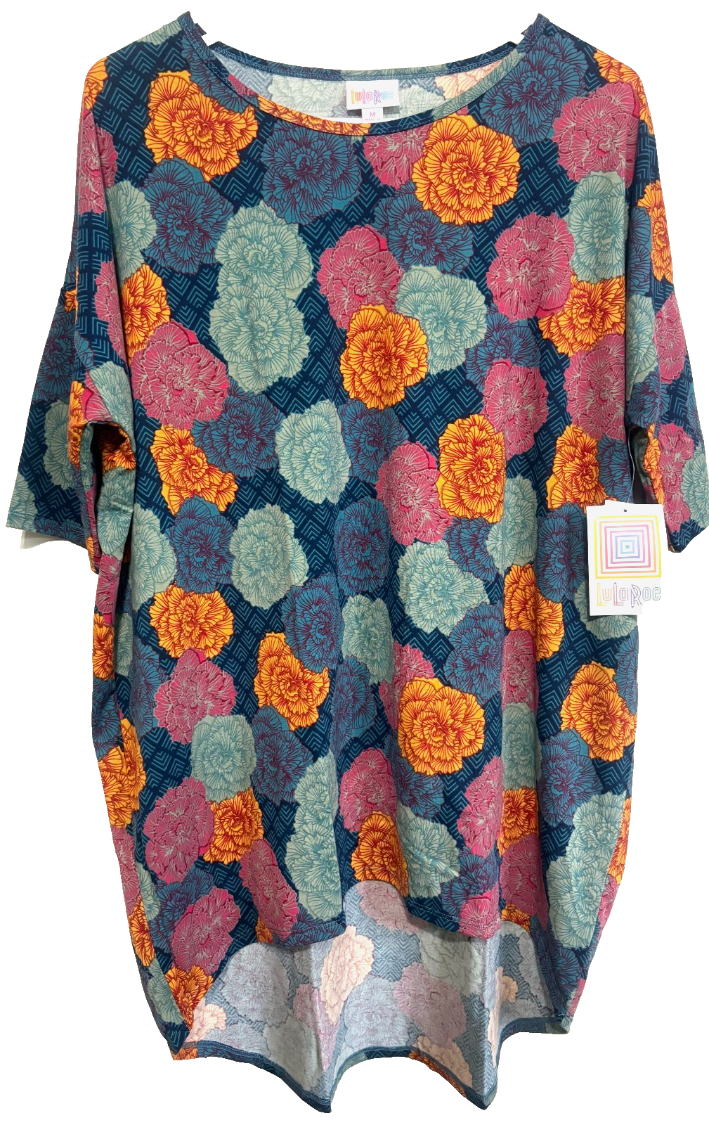 Lularoe Irma M Multicolor Carnations Short Sleeve Tunic Top NWT