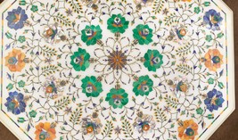 24" White Marble Pietra Dura Coffee Table Top Octagon Inlay lapis Table