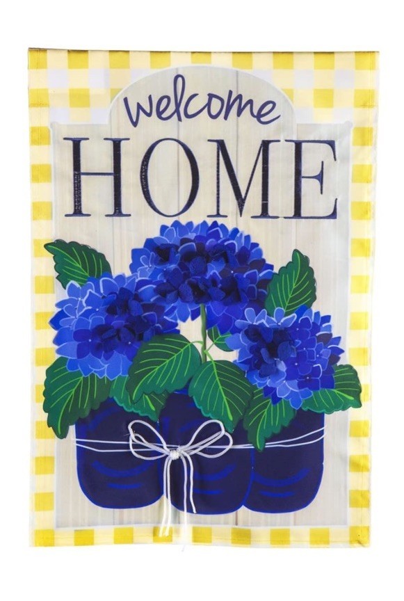 Evergreen Welcome Home Flag Hydrangeas Garden Seasonal Décor Applique 28x44