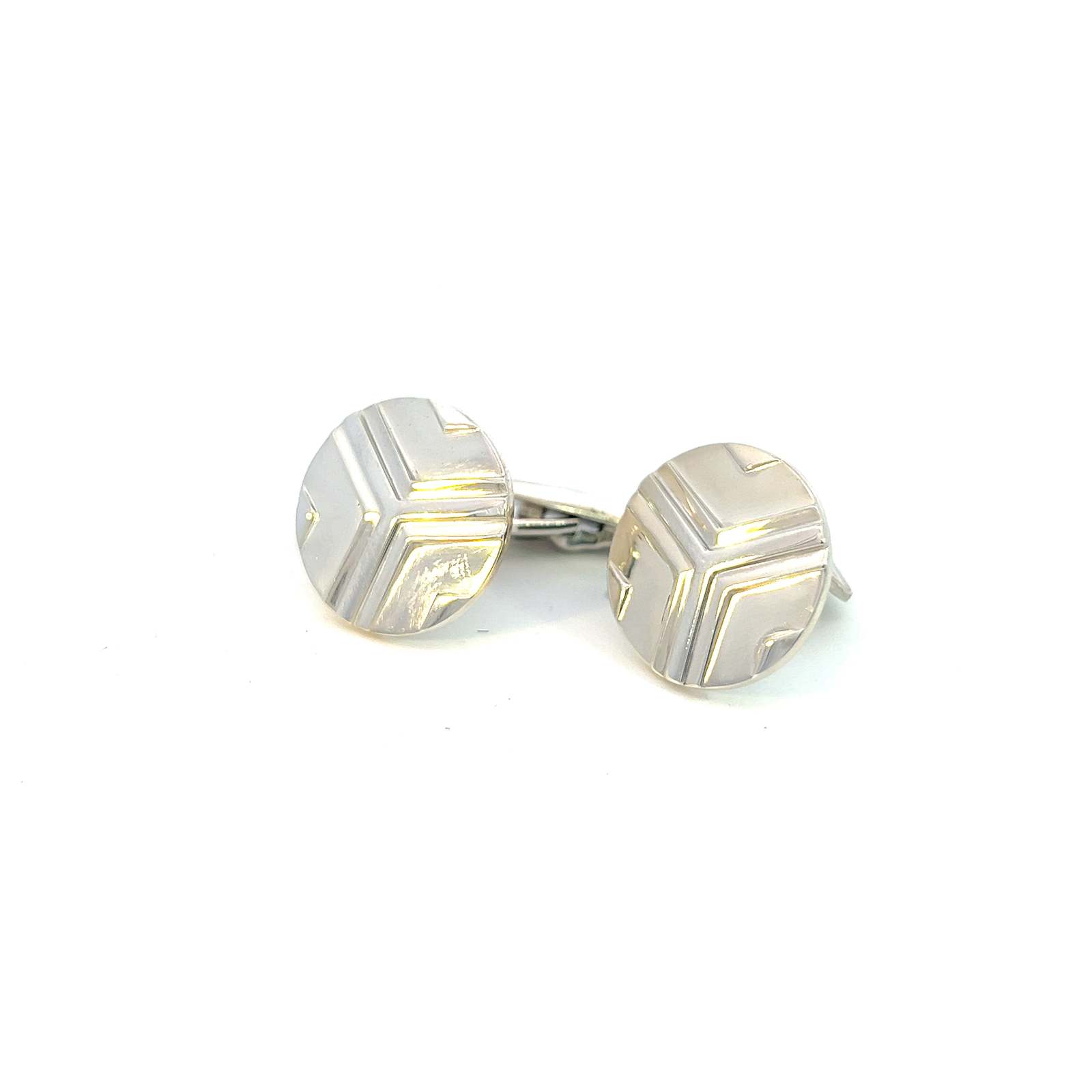 These Georg Jensen estate men?s cufflinks in sterling silver, newly polished, exhibit a radiant, like-new appearance that highlights their fine craftsmanship.