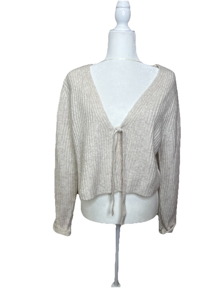 Ava & Viv Women’s XXL Crop sweater Top Open Front Oatmeal Fall School Outdoors