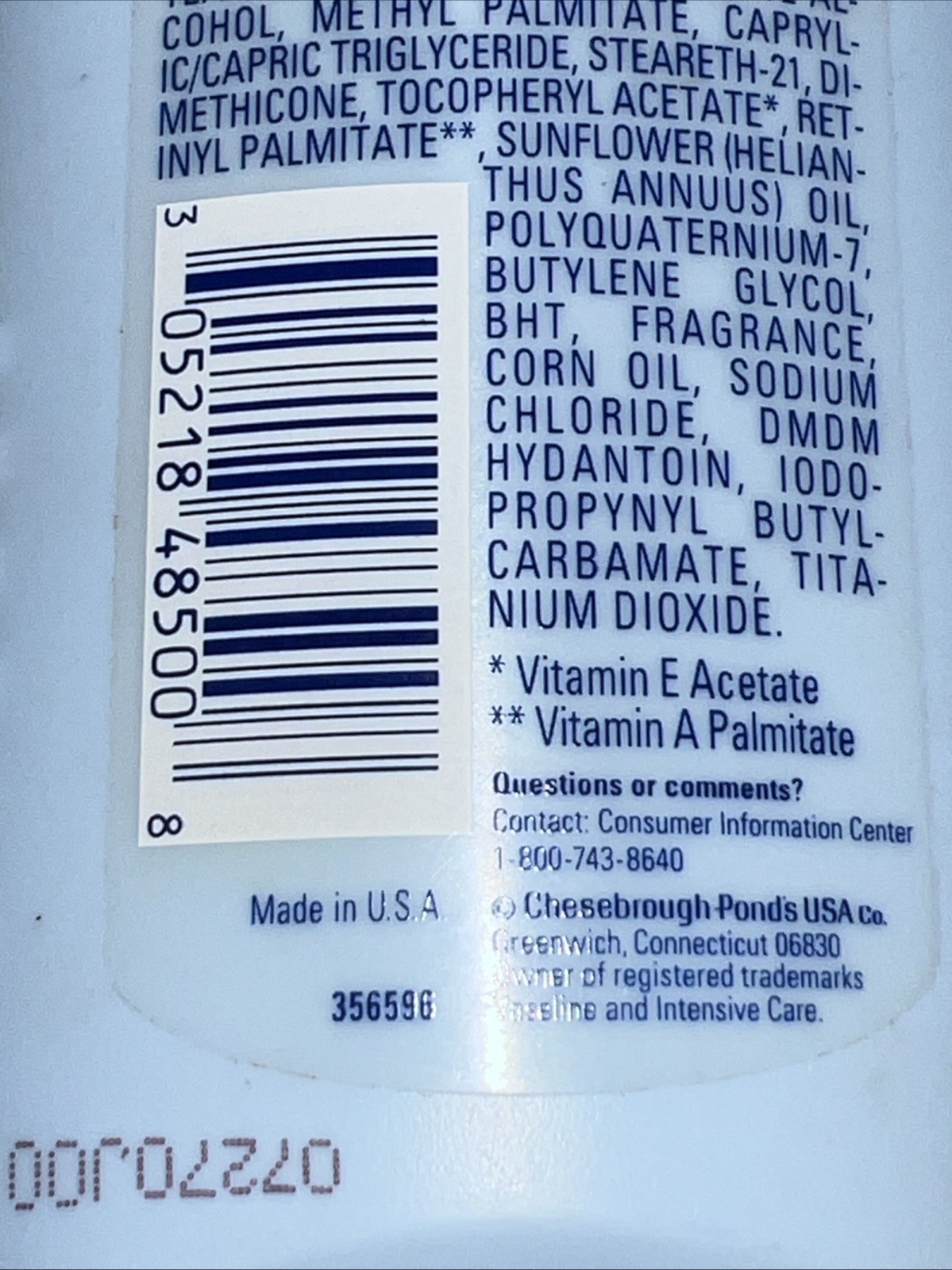 Vintage Vaseline Intensive Care Lotion Water Resistant 3.3 Oz Rare USA Travel
