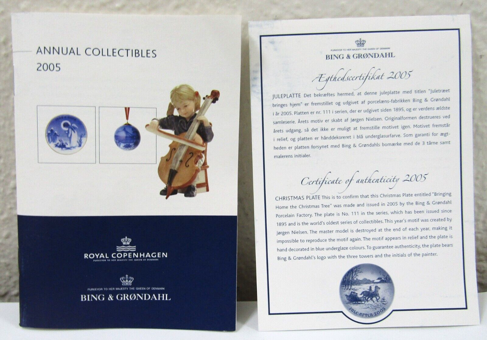 Bing Grondahl Jule-After 2005 Bringing Home the Christmas Tree Plate with Papers and Box