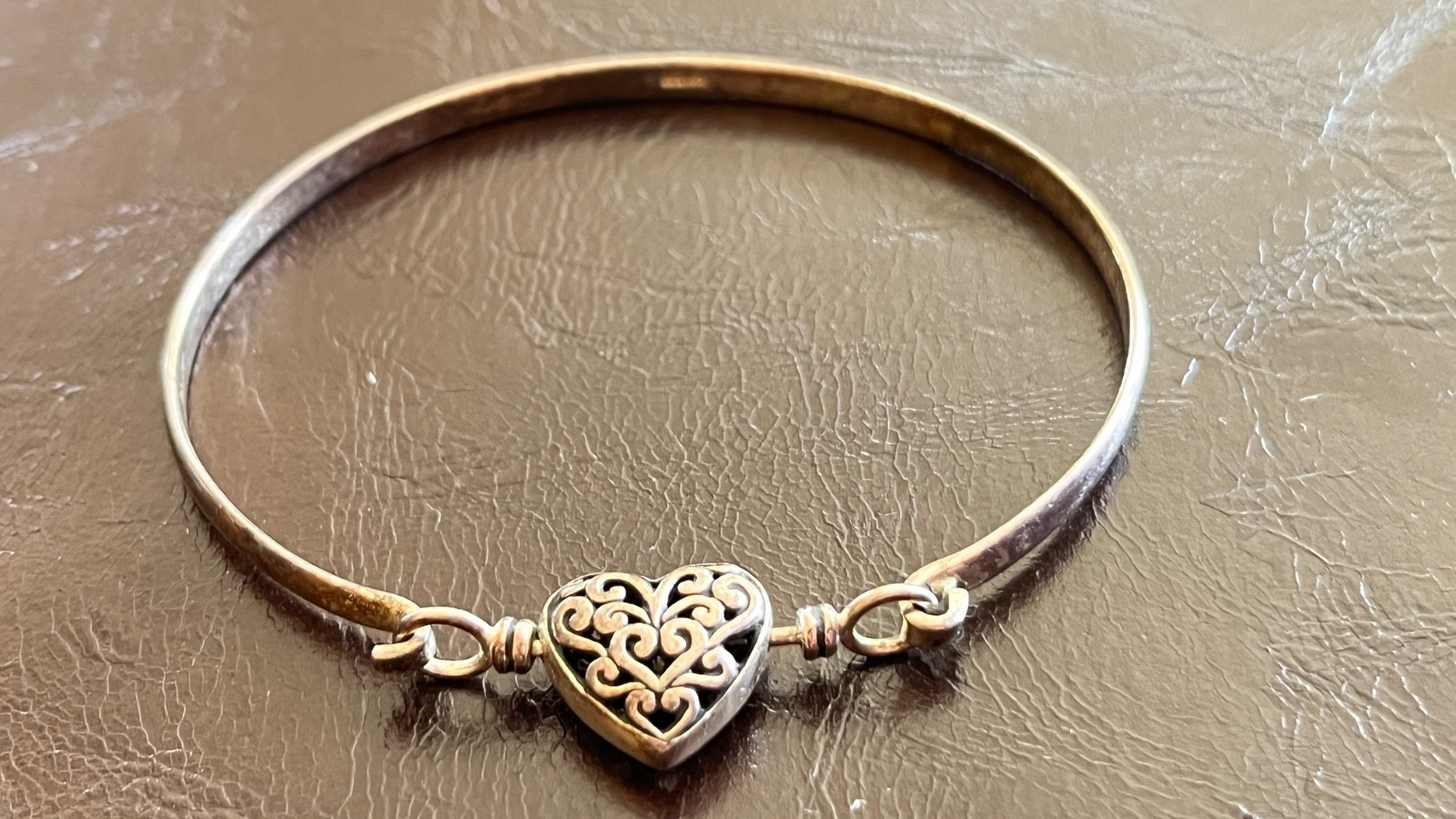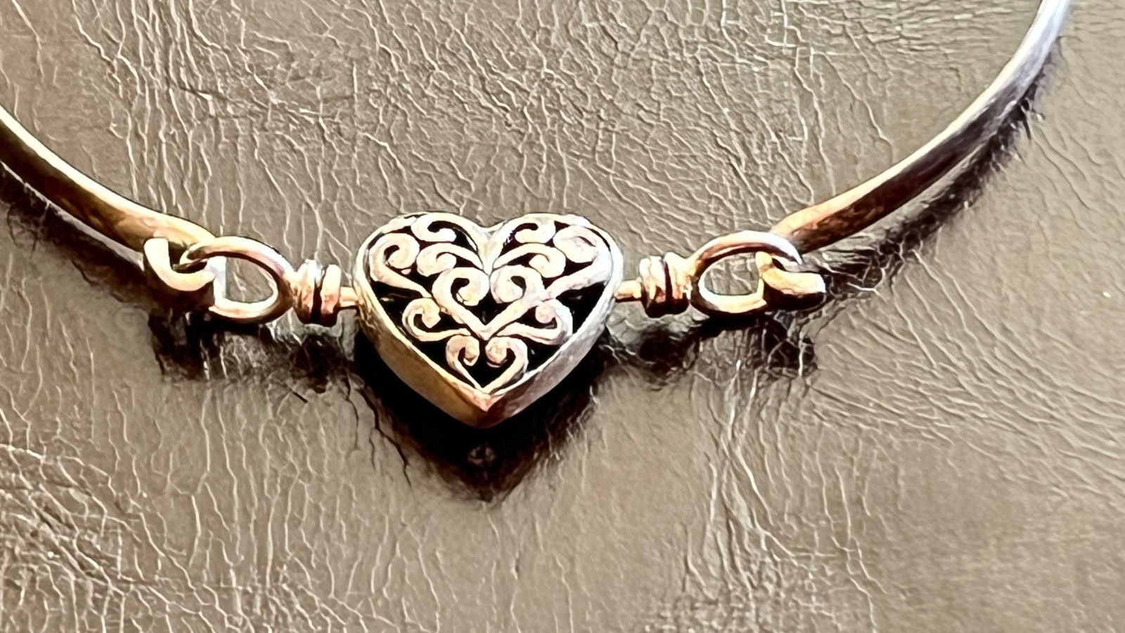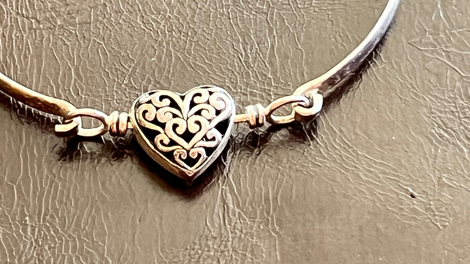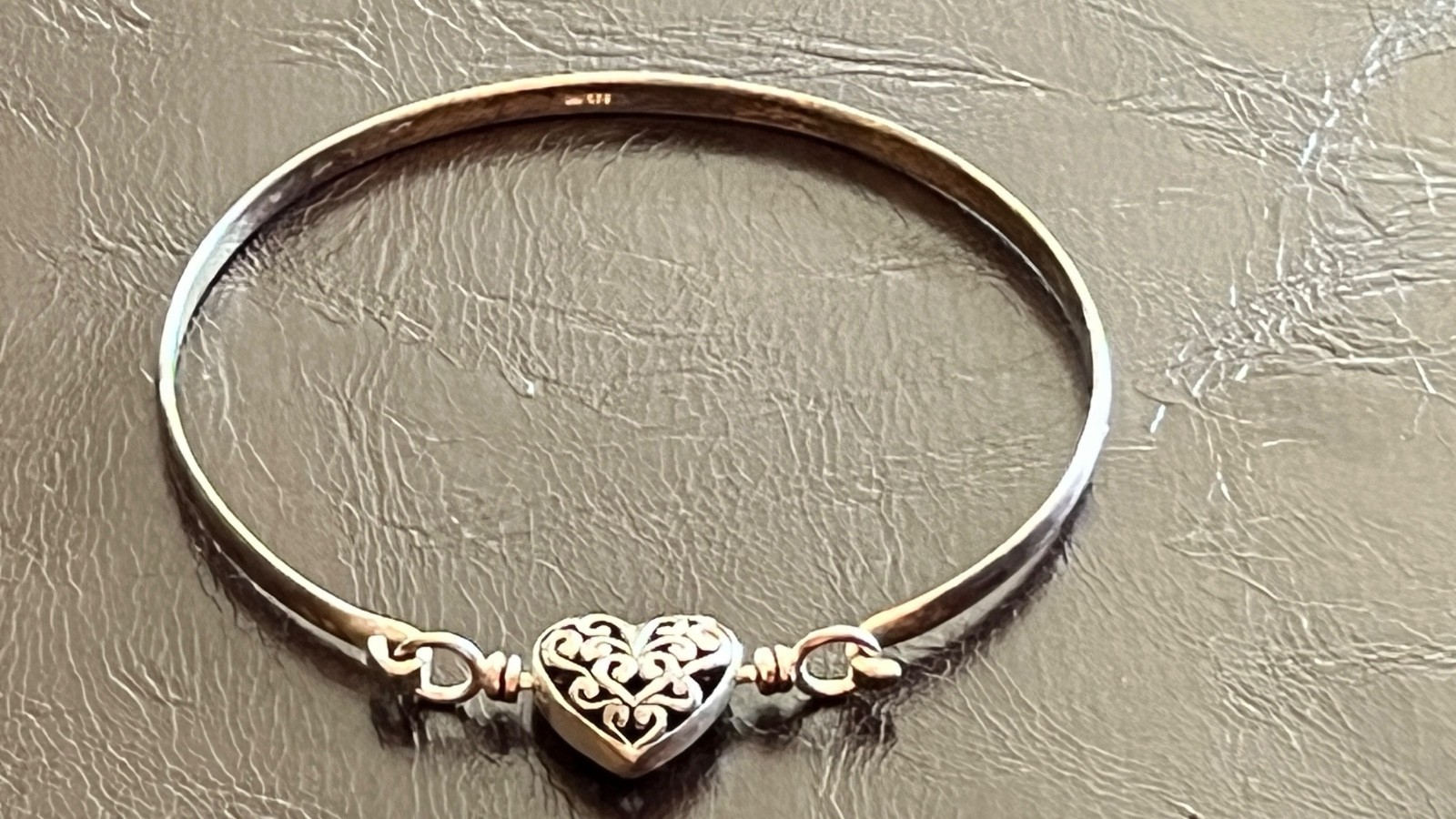 Vintage 925 Sterling 7" Hinged 4mm Bangle w/ Scroll Heart Bracelet 10.5 grams