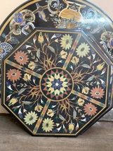 32 "Black Marble Coffee Table Top Lapis Lazuli Inlay Mosaic Pirtradure