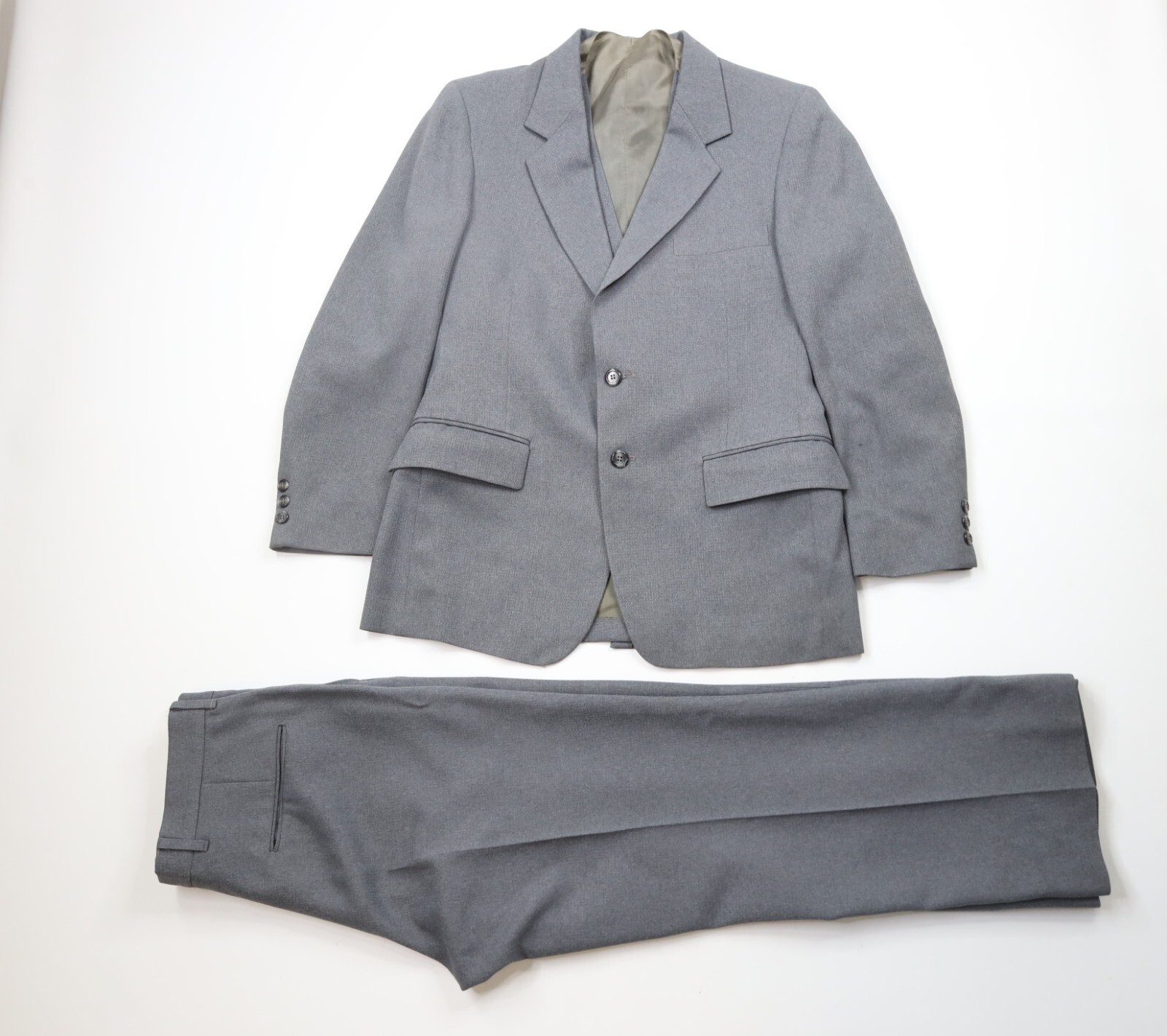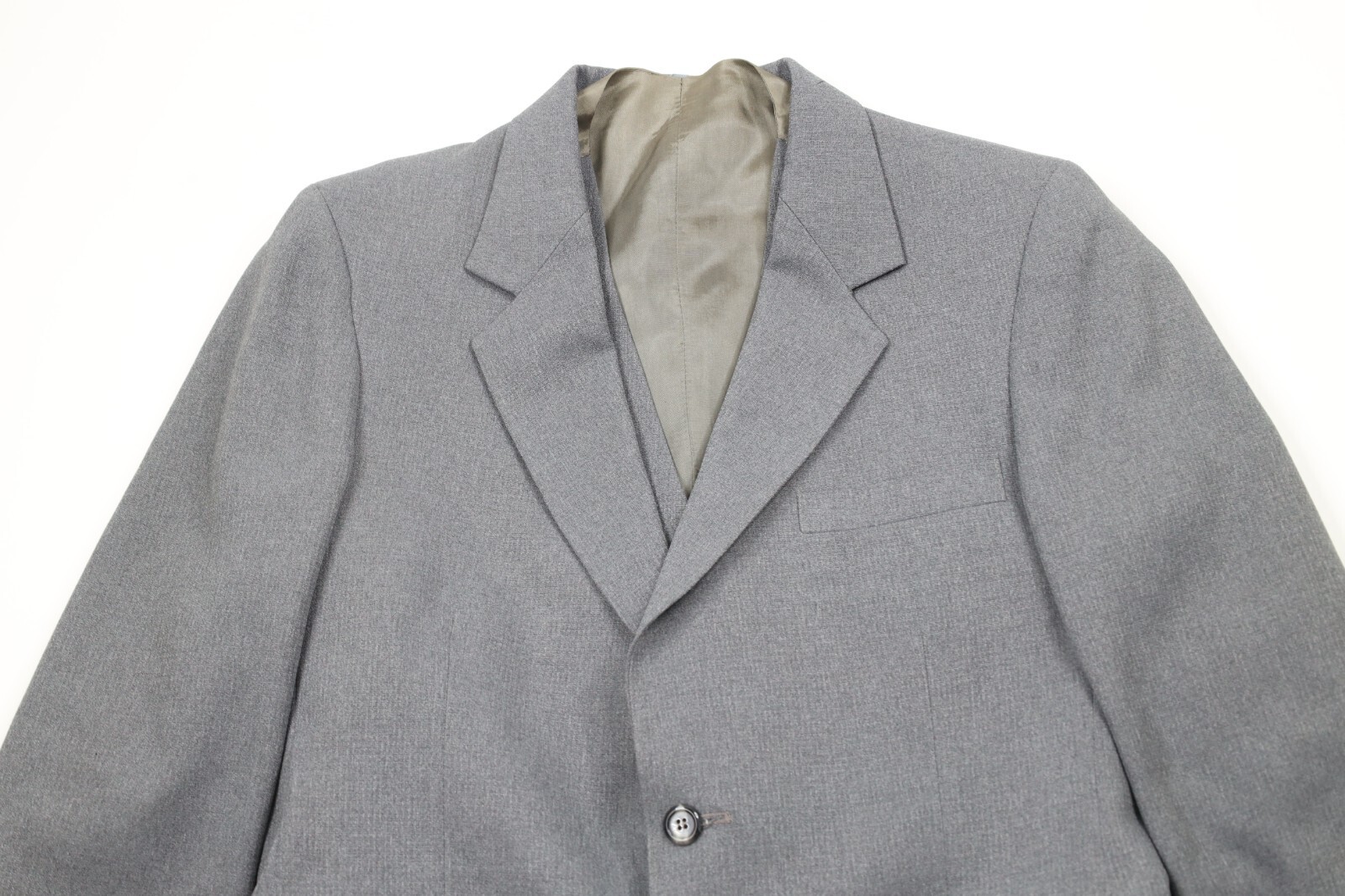 Vintage 70s Streetwear Mens 40S 3 Piece Knit Wedding Bell Bottoms Suit Gray USA