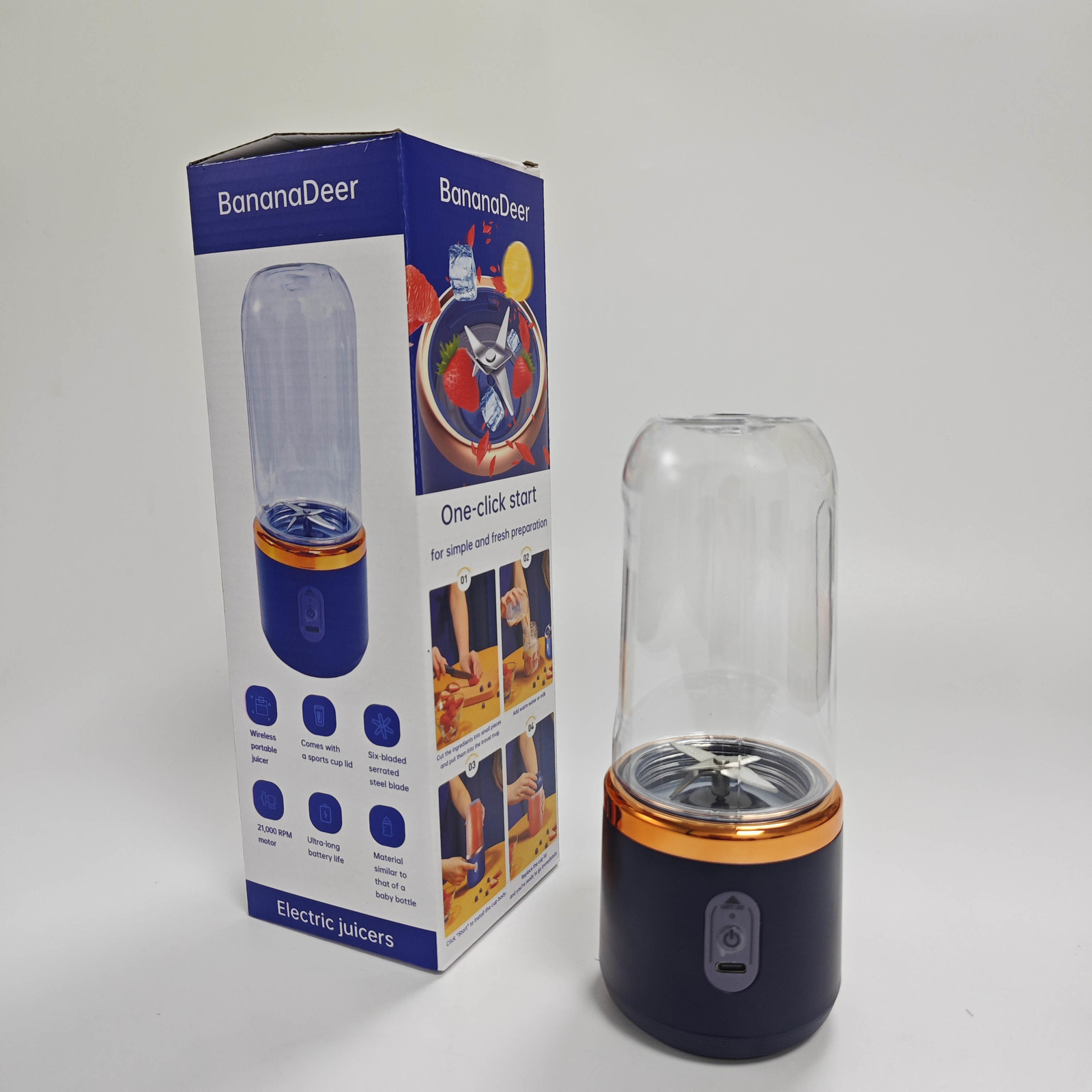 The Electric juicers Portable Blender's and 304 stainless steel blades efficiently pulverize citrus fruits in 10 seconds.