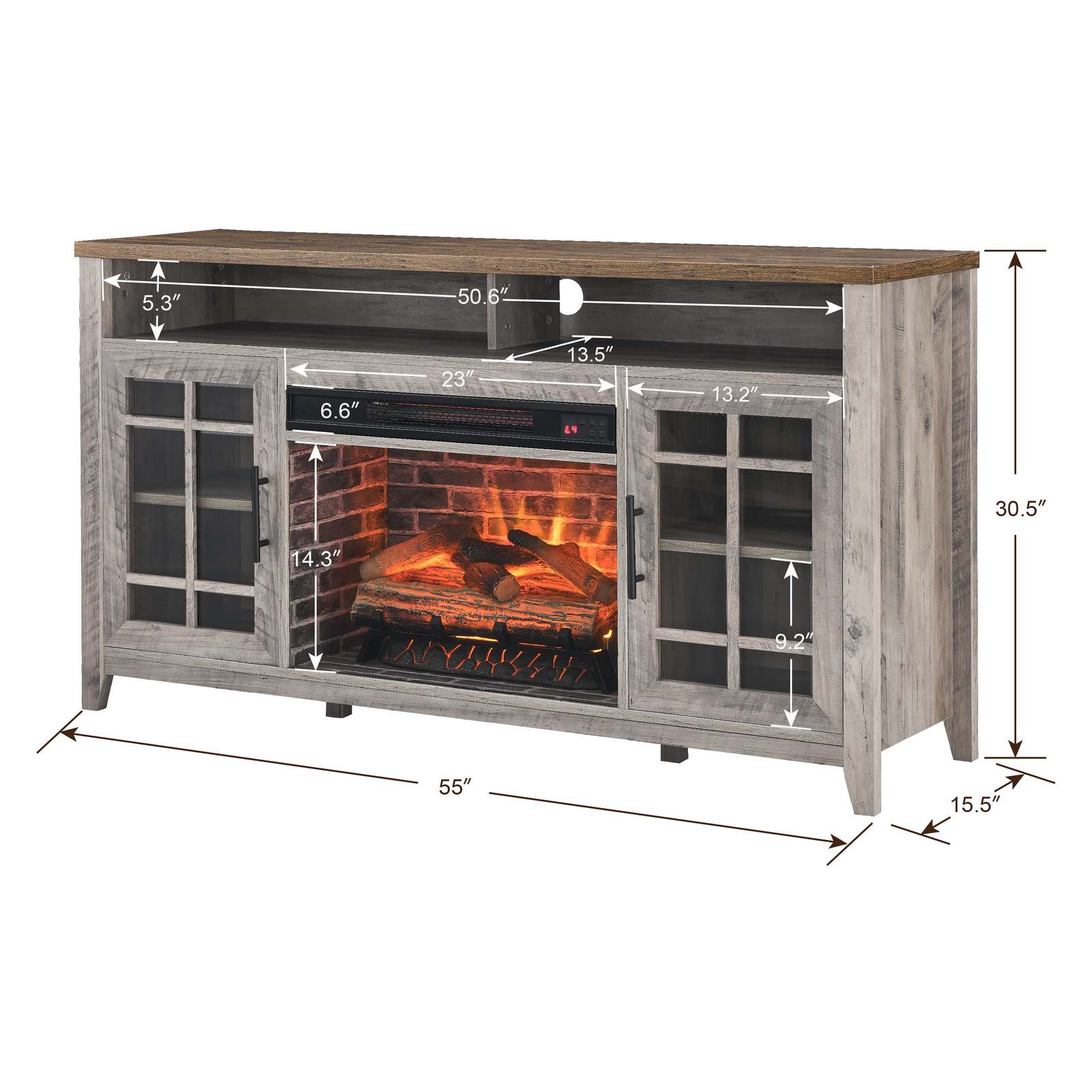 55" TV Stand Media Console with Electric Fireplace Heater Gray Wash