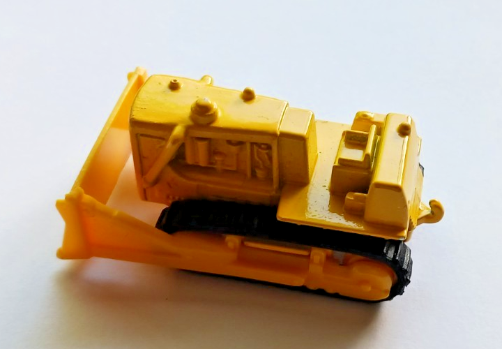 This is a bright yellow color painted bulldozer, a special edition from Maisto. It is die cast metal, with some plastic parts and rubber tracks. This tractor is 2 and 3/4" inches long, and in as-new condition condition, never played with at all, Only stored away as part of my large collection of all types of vehicles.