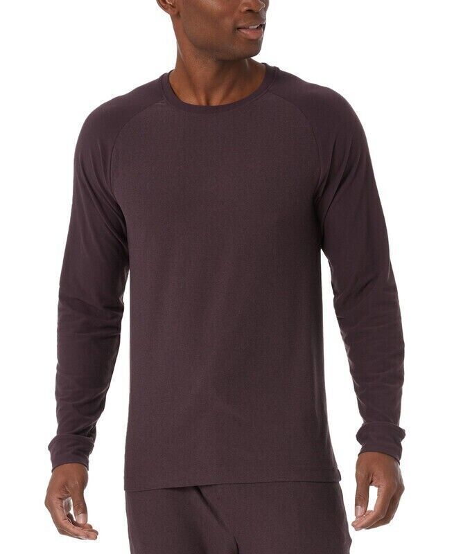 32 Degrees Men's Raglan Long-Sleeve Sleep T-Shirt in Heather Rich Plum-Medium
