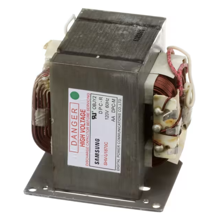 The Samsung OBJY2 high voltage transformer offers factory-original performance, ensuring your microwave heats quickly and evenly. Using a genuine OEM part guarantees safe operation, perfect fit, and long-term reliability.