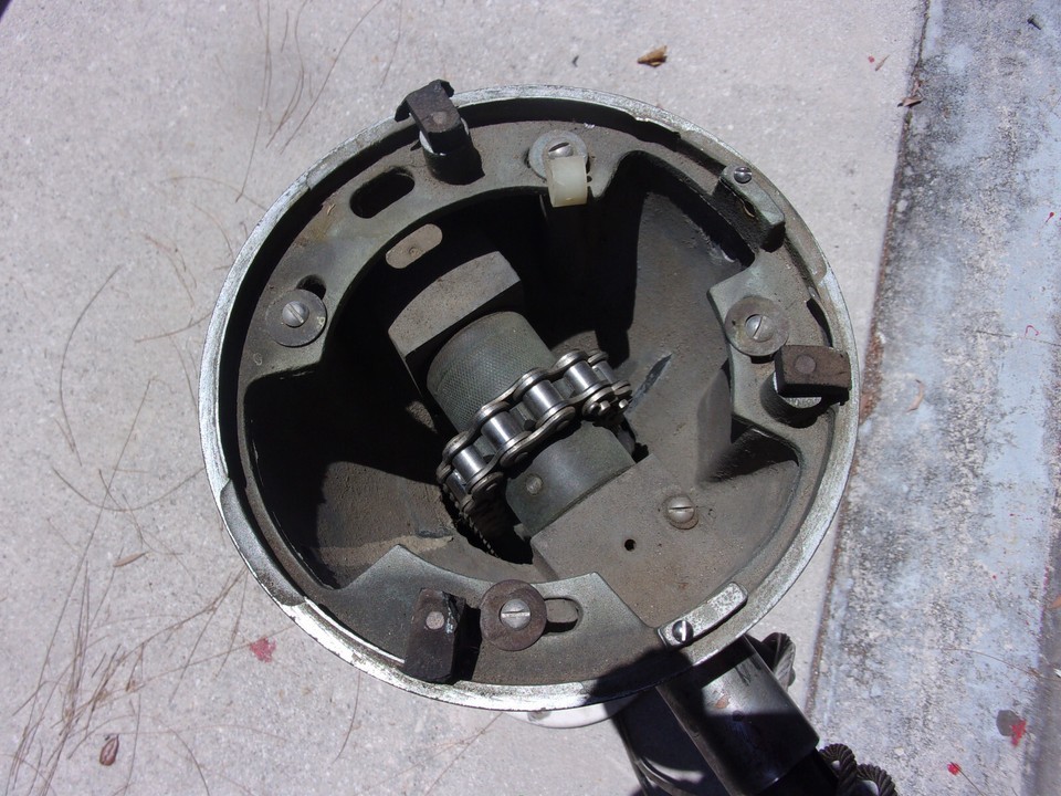 30" STEERING PEDESTAL ASSEMBLY 10" diameter 4 bolt alum. base 7" diameter at top, bronze 1" keyed shaft ,Y/S helm nut with key, stainless 22" chain with pair 60" cables attached, pair bronze eye bolts to attach cable to quadrant. No wheel
