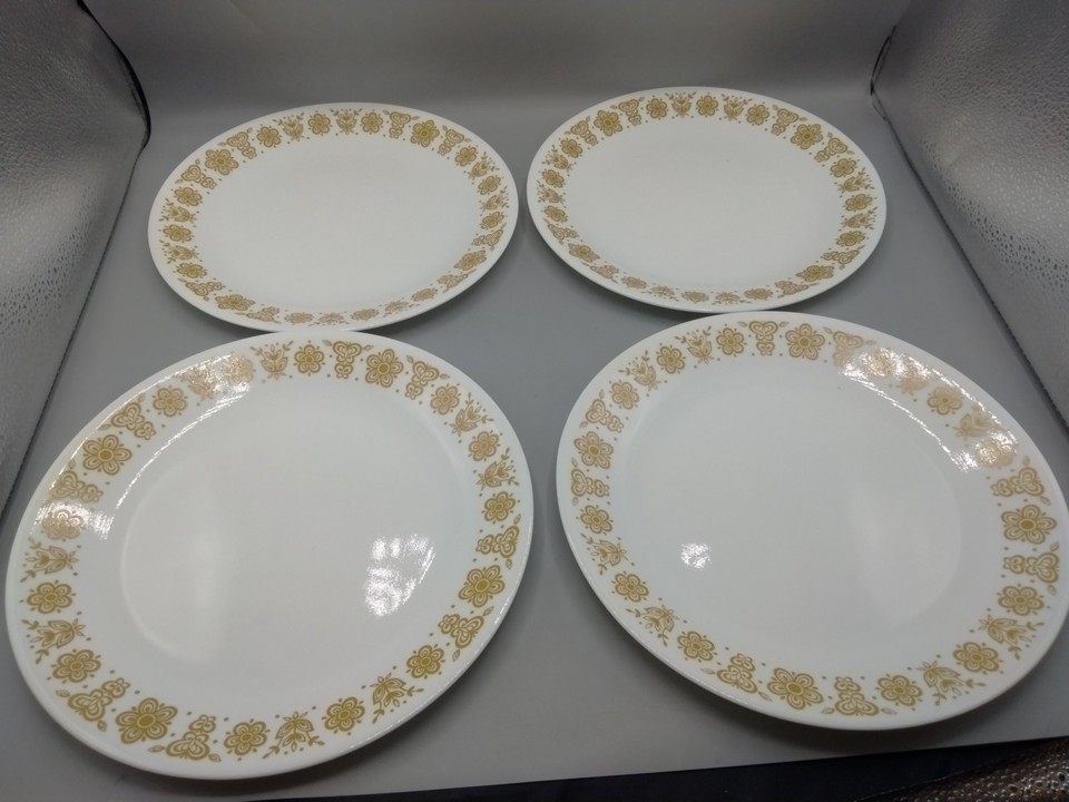Corning Ware Corelle Butterfly Gold Dinner Plates 10.25" Vintage Set Of 4