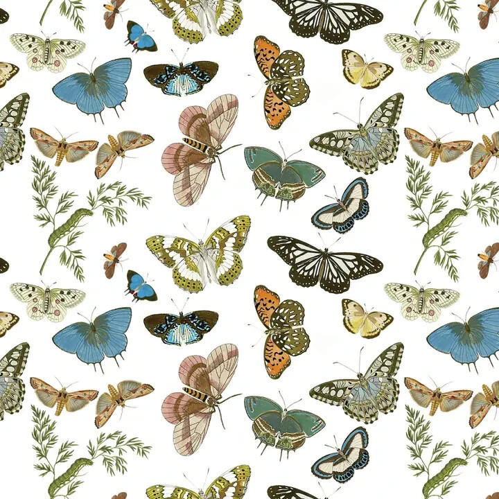 24x30" Butterfly & Moths Roll Gift Wrapping Paper, Pre-cut Sheets, Made in USA