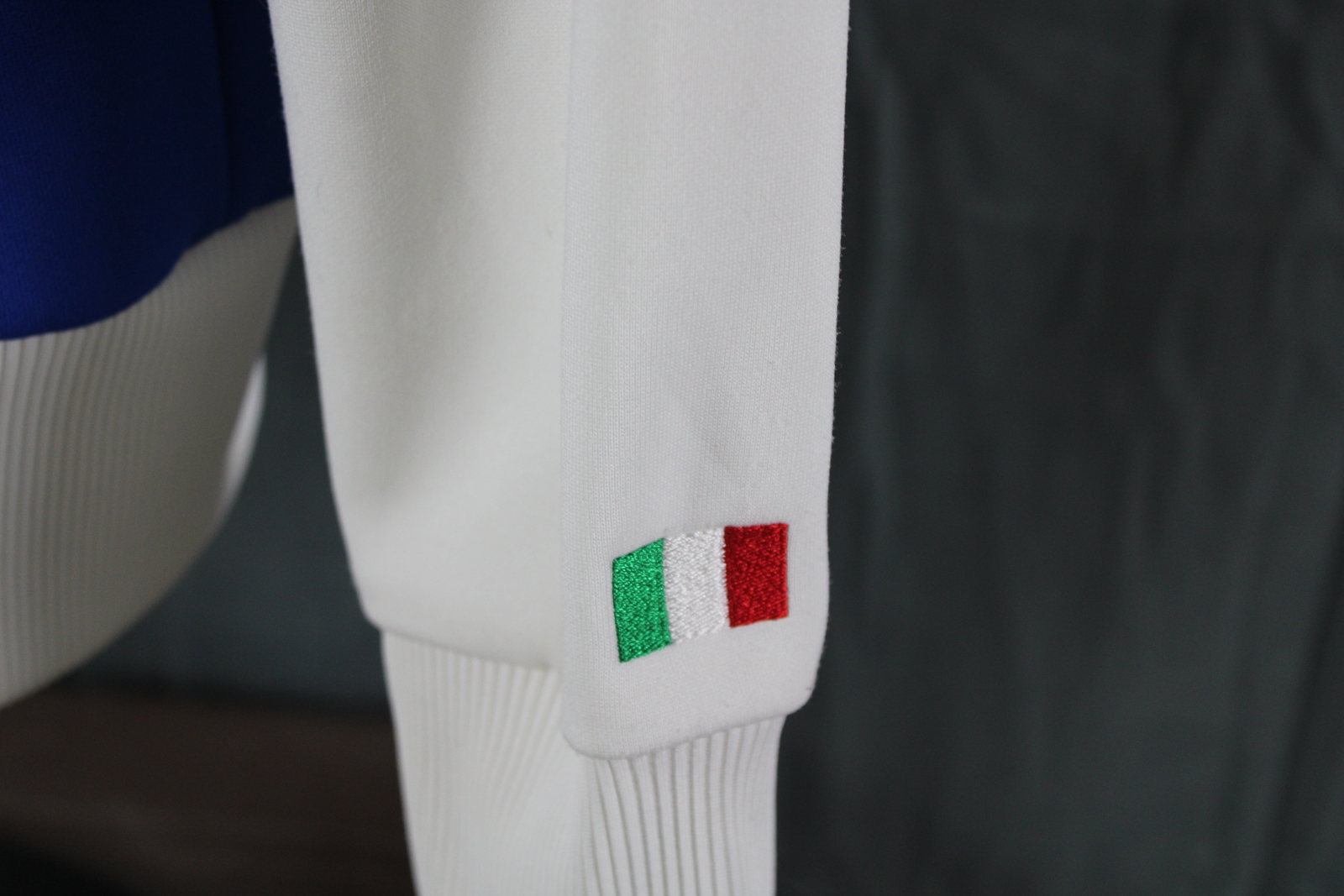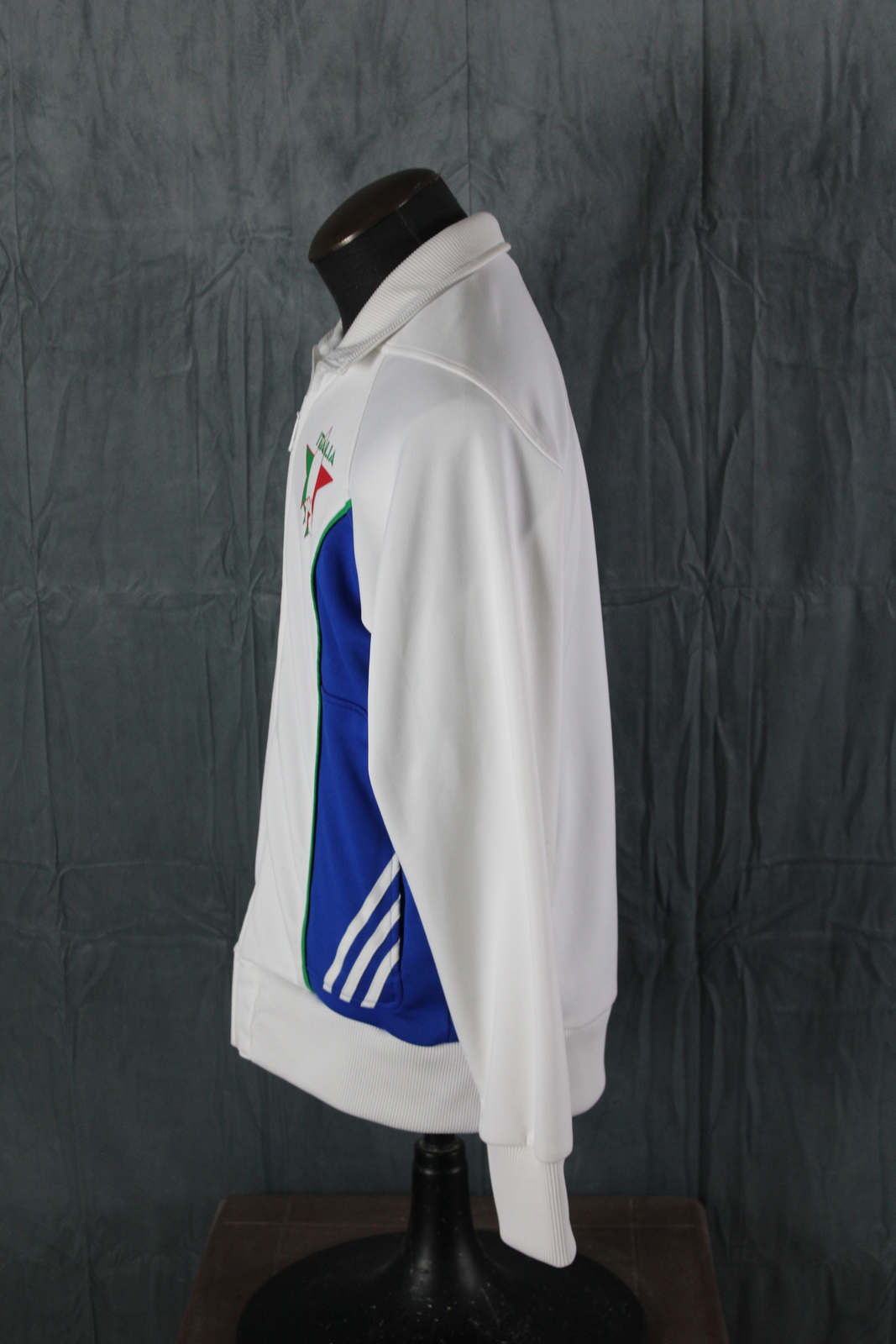 Up for sale is a retro Team Italy warm-up jacket by Adidas. It has a white base colour with blue trim. The front of the Adidas logo stitched in with an Italia star logo screened on the opposite side. What a great jacket, do not miss out on it.