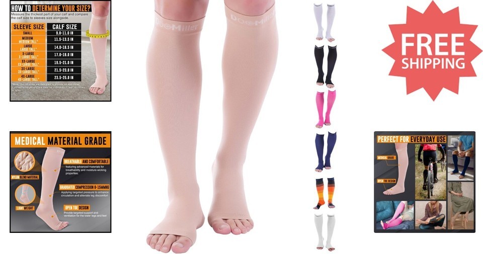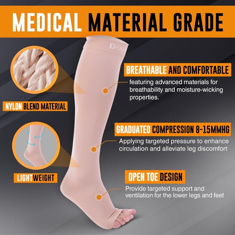 Features: Open Toe,Support Circulation,Shin Splints,Calf Recovery,Varicose,Knee High,Medical Grade,Versatile for Daily Use