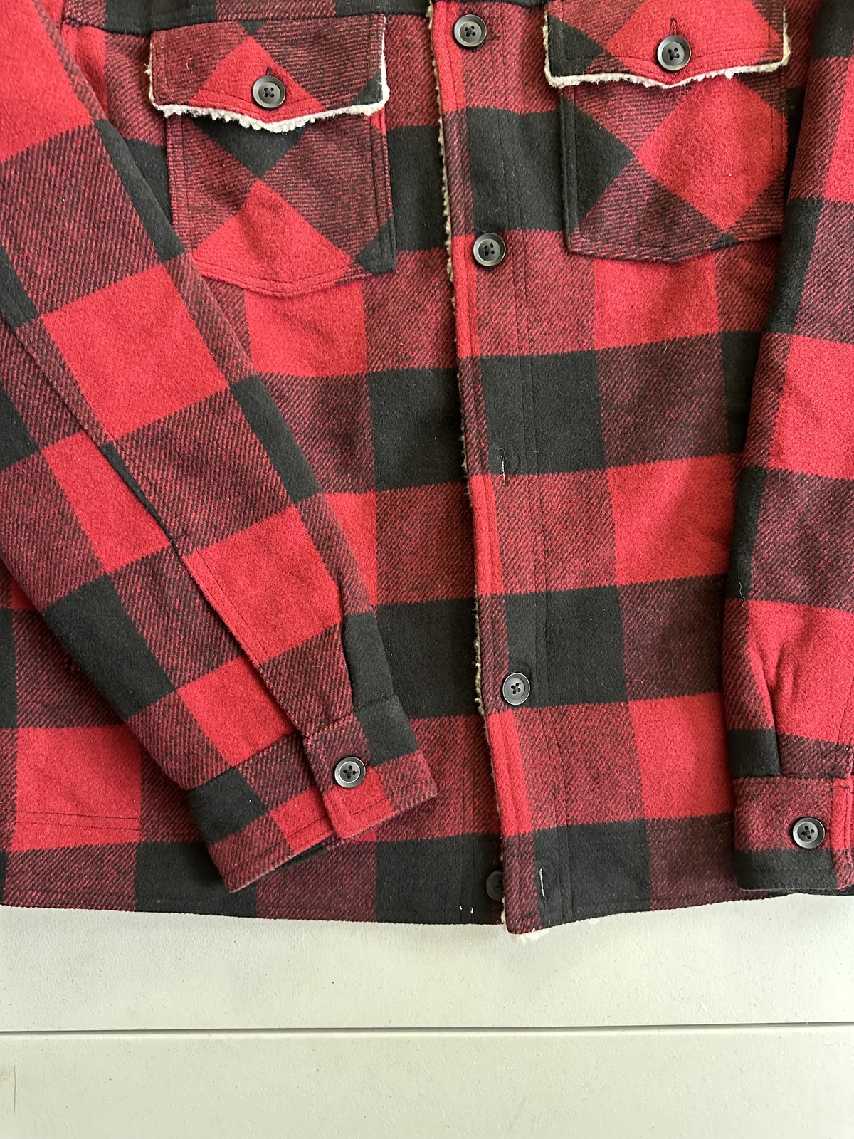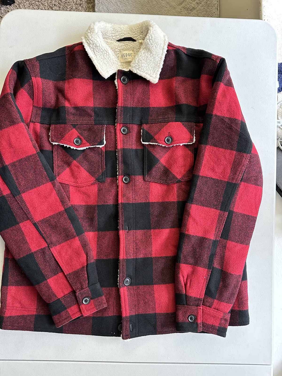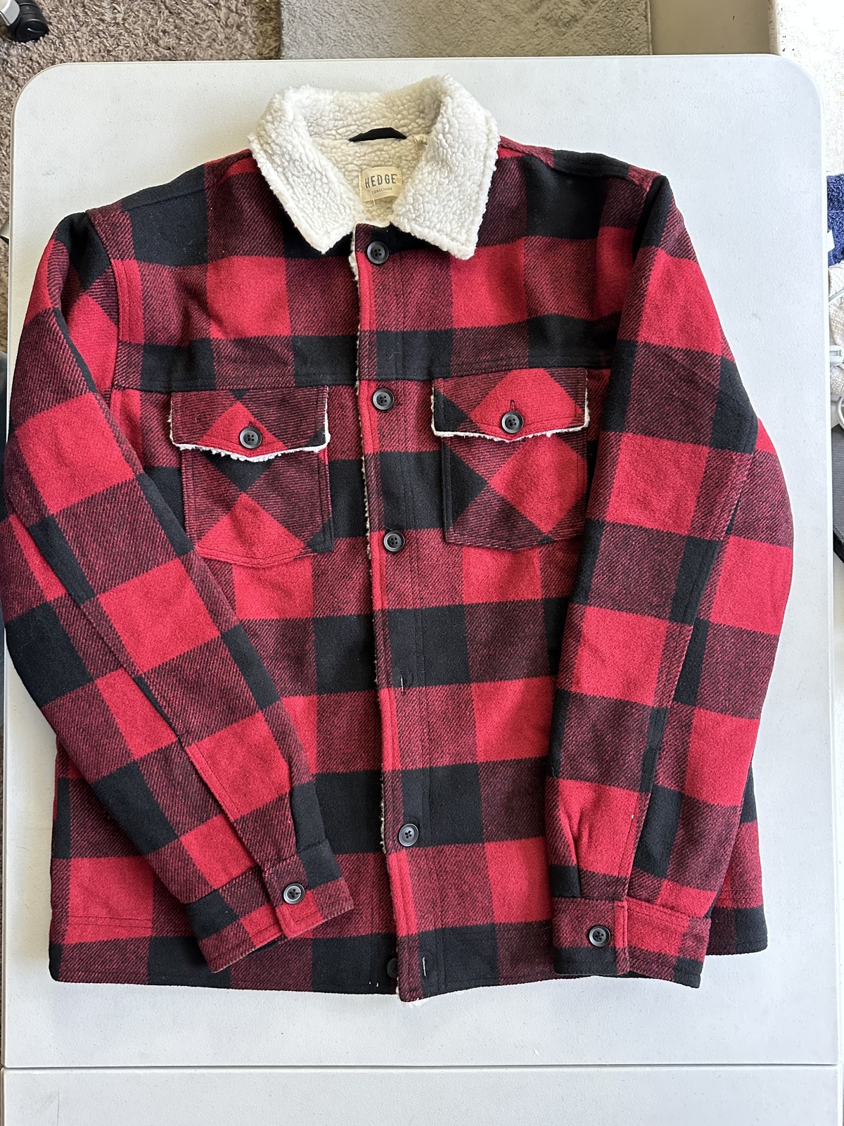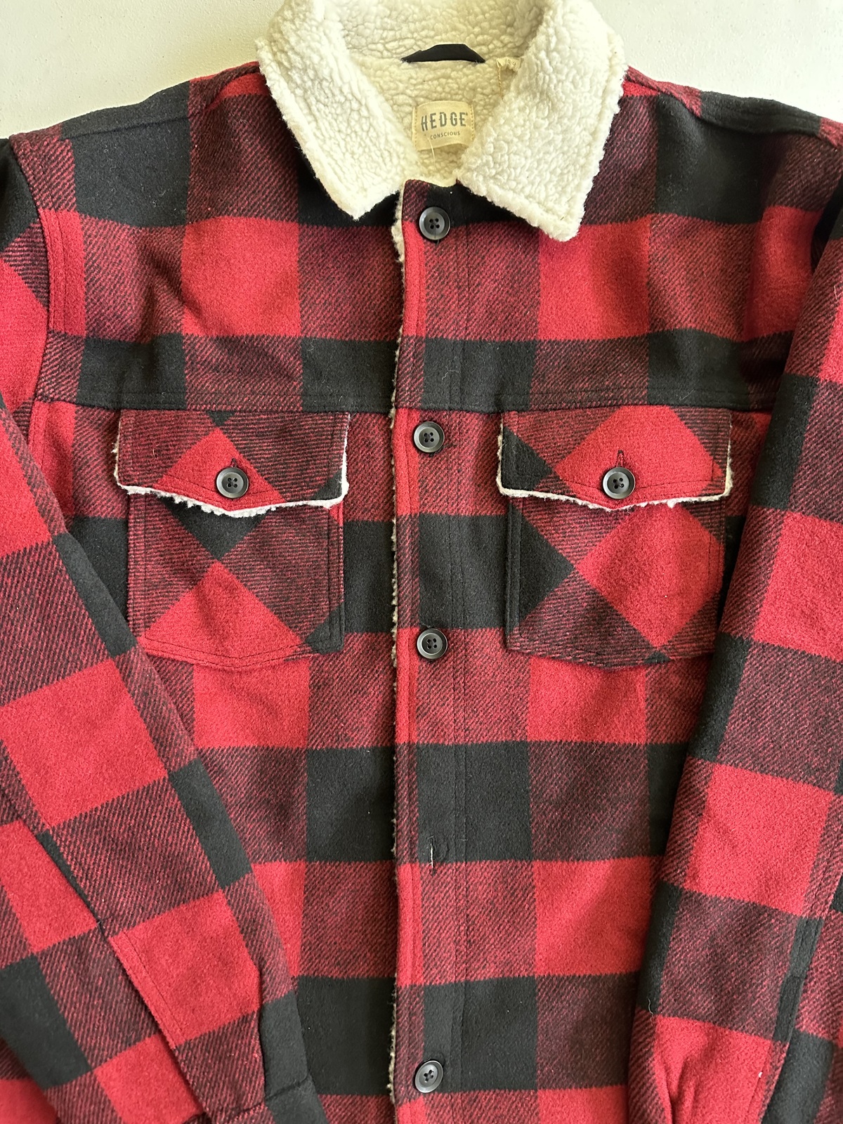 Hedge Men's Sherpa Lined Plaid 25V9 Woven Jacket Red Plaid- Size Medium