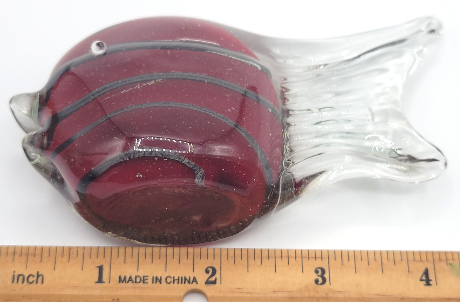 Angle Fish Figurine Art Glass Ruby Red/Black Tiger Stripe Handmade
