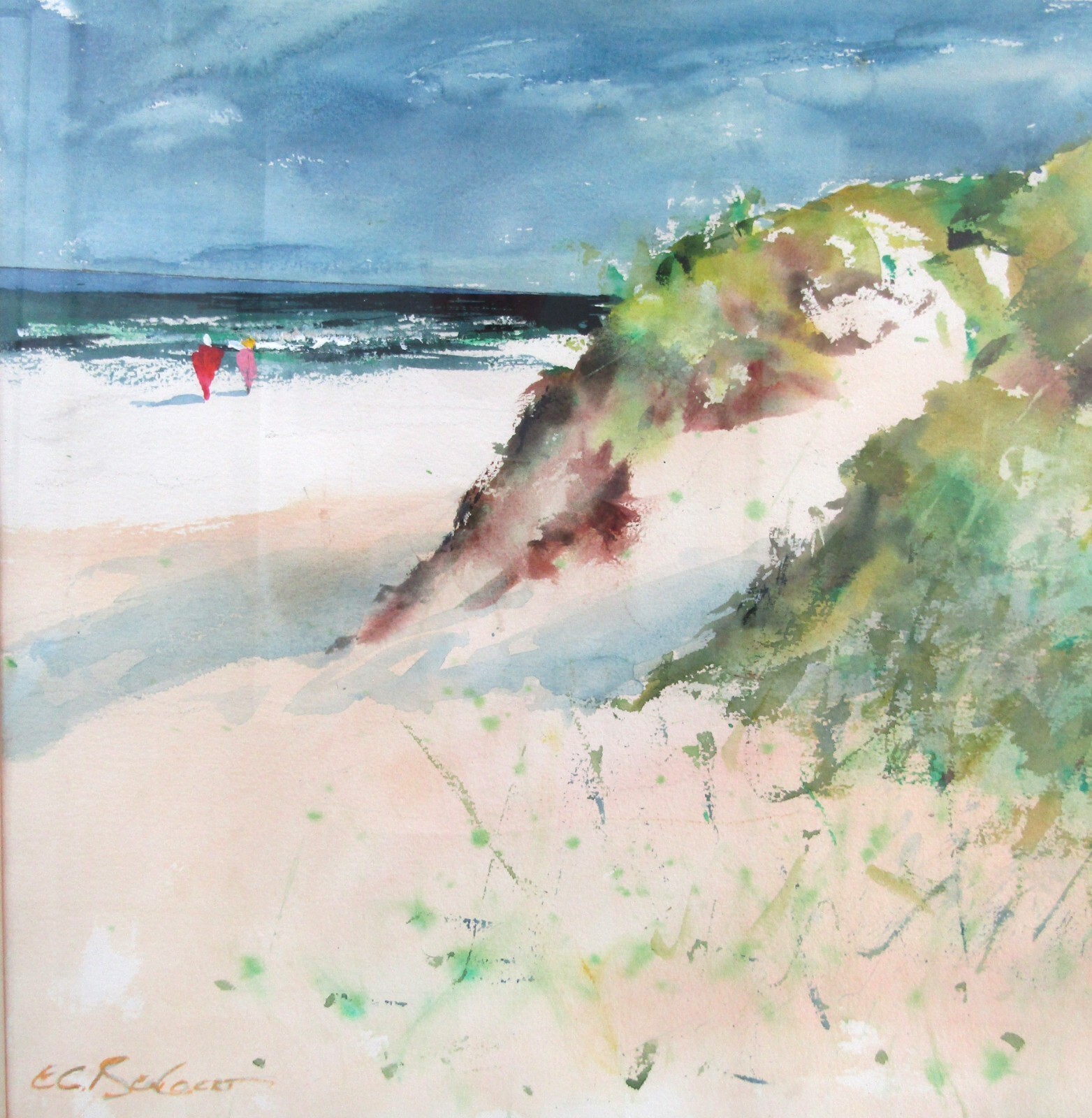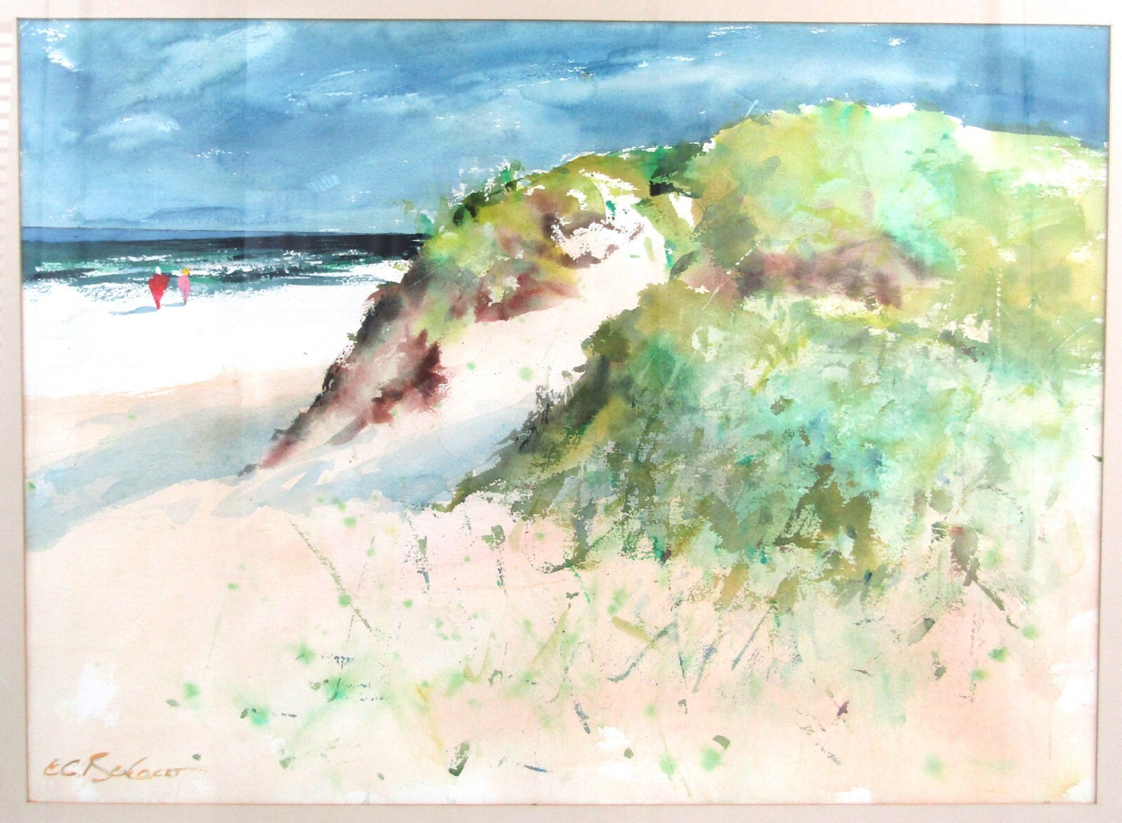 Vintage Original E. G. Bengert Watercolor Painting of Beach Sand Dunes