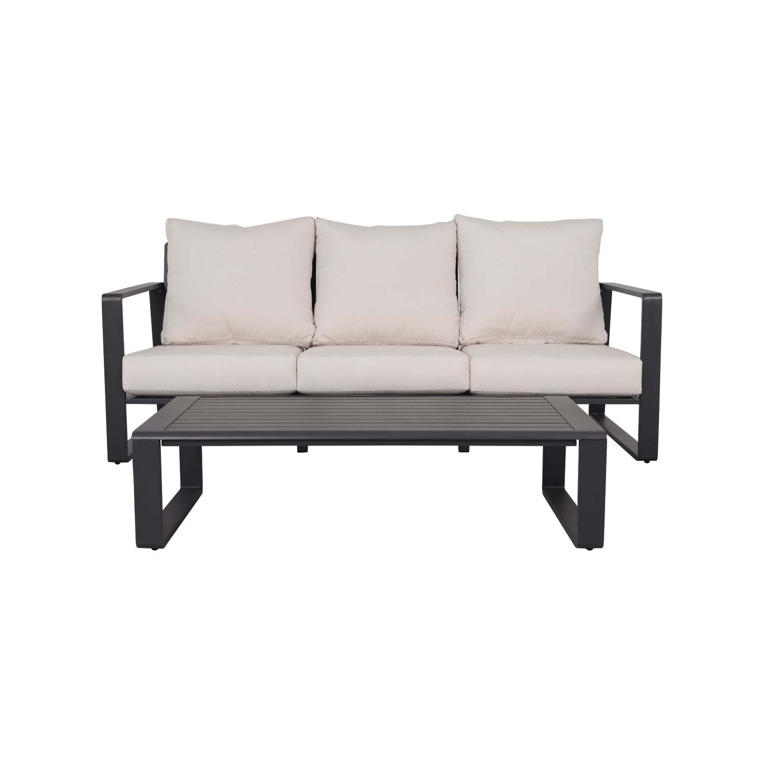 Contemporary 3-Seat Sofa & Table Set: Beige, Aluminum Frame