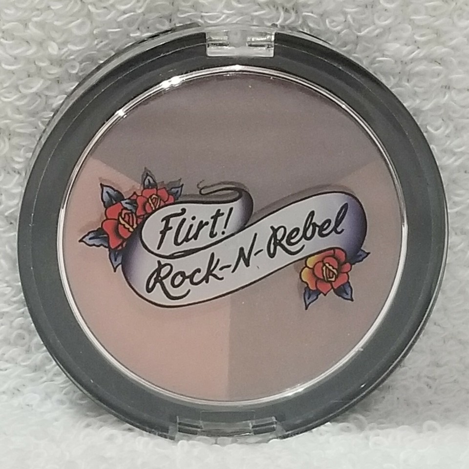 1 Brand New Unsealed/Unboxed Full Size Compact by Flirt Rock-N-Rebel 01 PINK ROCKER Eyeshadow Trio Sheer Colors! Colors are a Dark Brown, Light Brown Tan/Neutral Color! 100% Authentic! Discontinued Hard to Find! RARE!