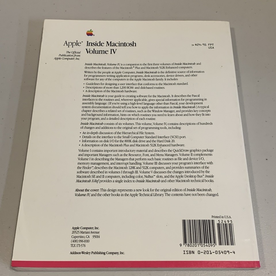 Inside Macintosh: v. 4, Apple Computer Inc 1988 Macintosh Plus And 512k