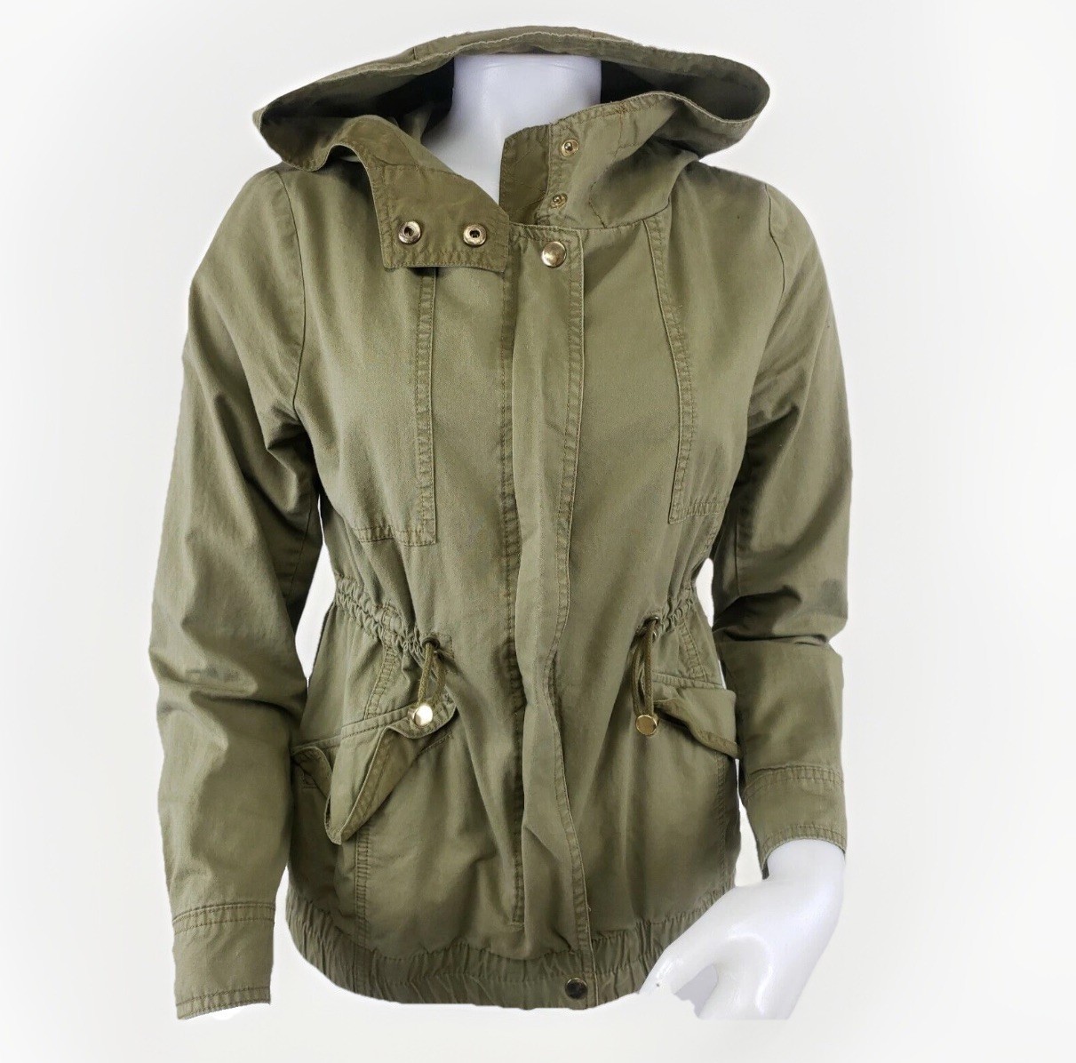 Anthropologie Anorak Jacket Womens S Olive Drab Love Tree Hooded 100% Cotton