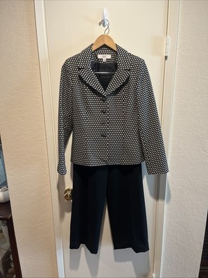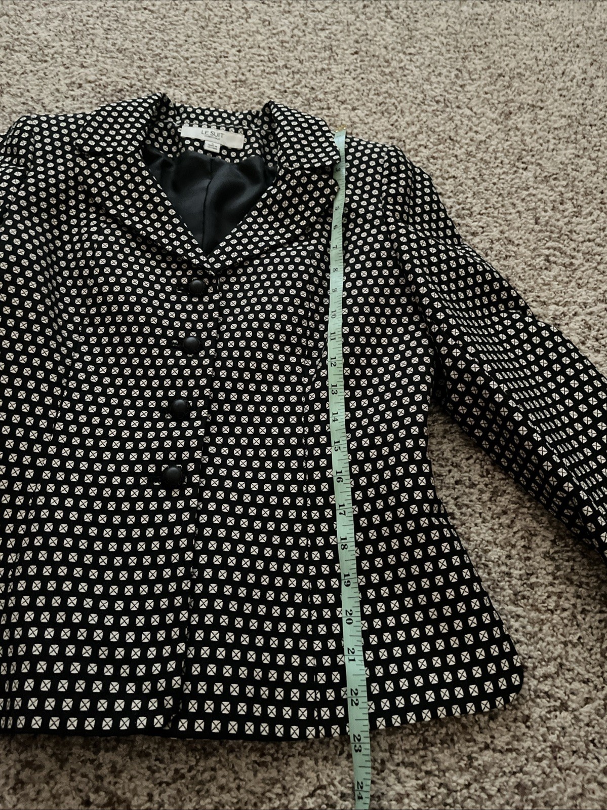 Le Suit Essentials Black Beige Square Pattern Jacket & Black Pants Women’s 6