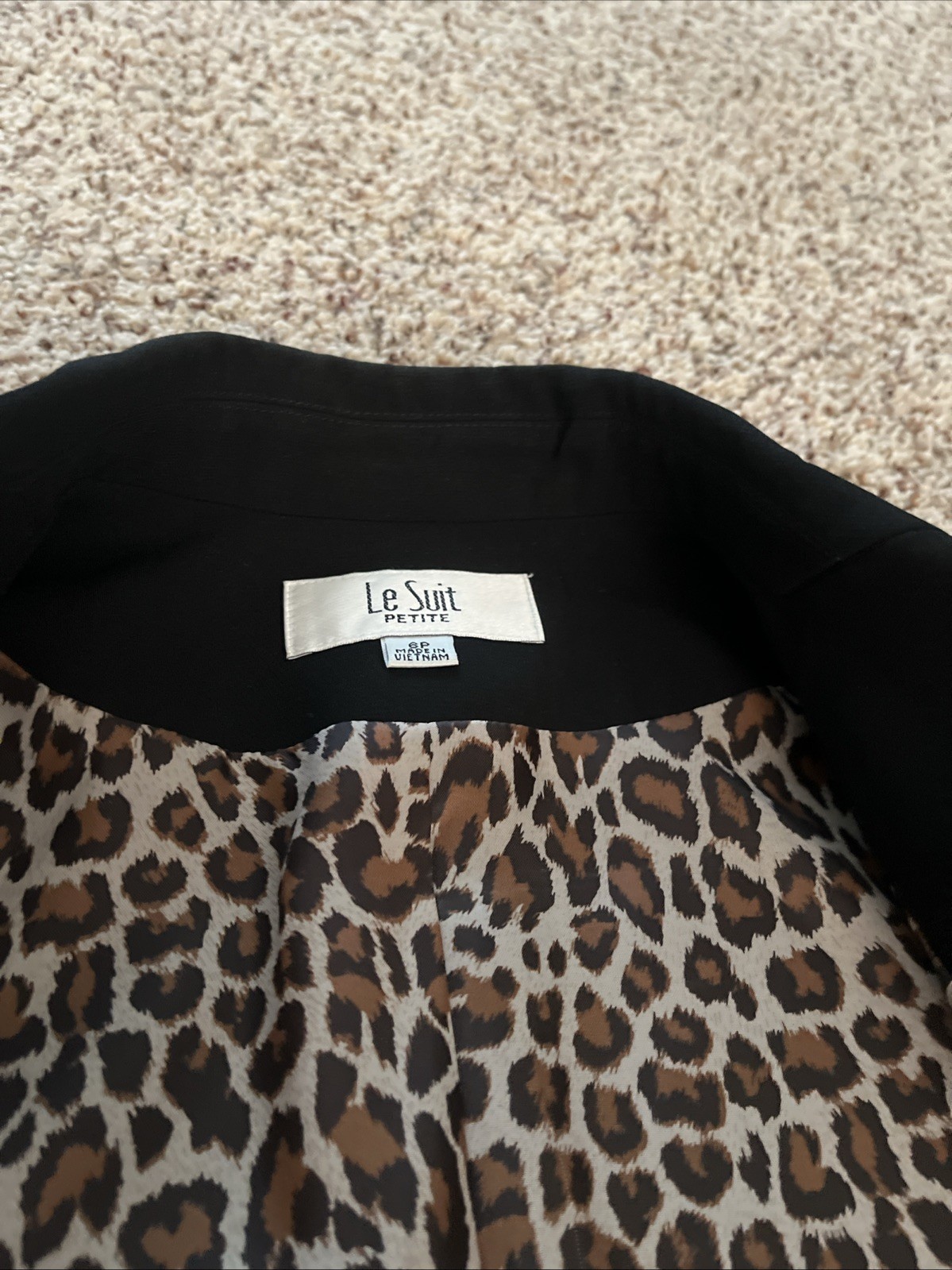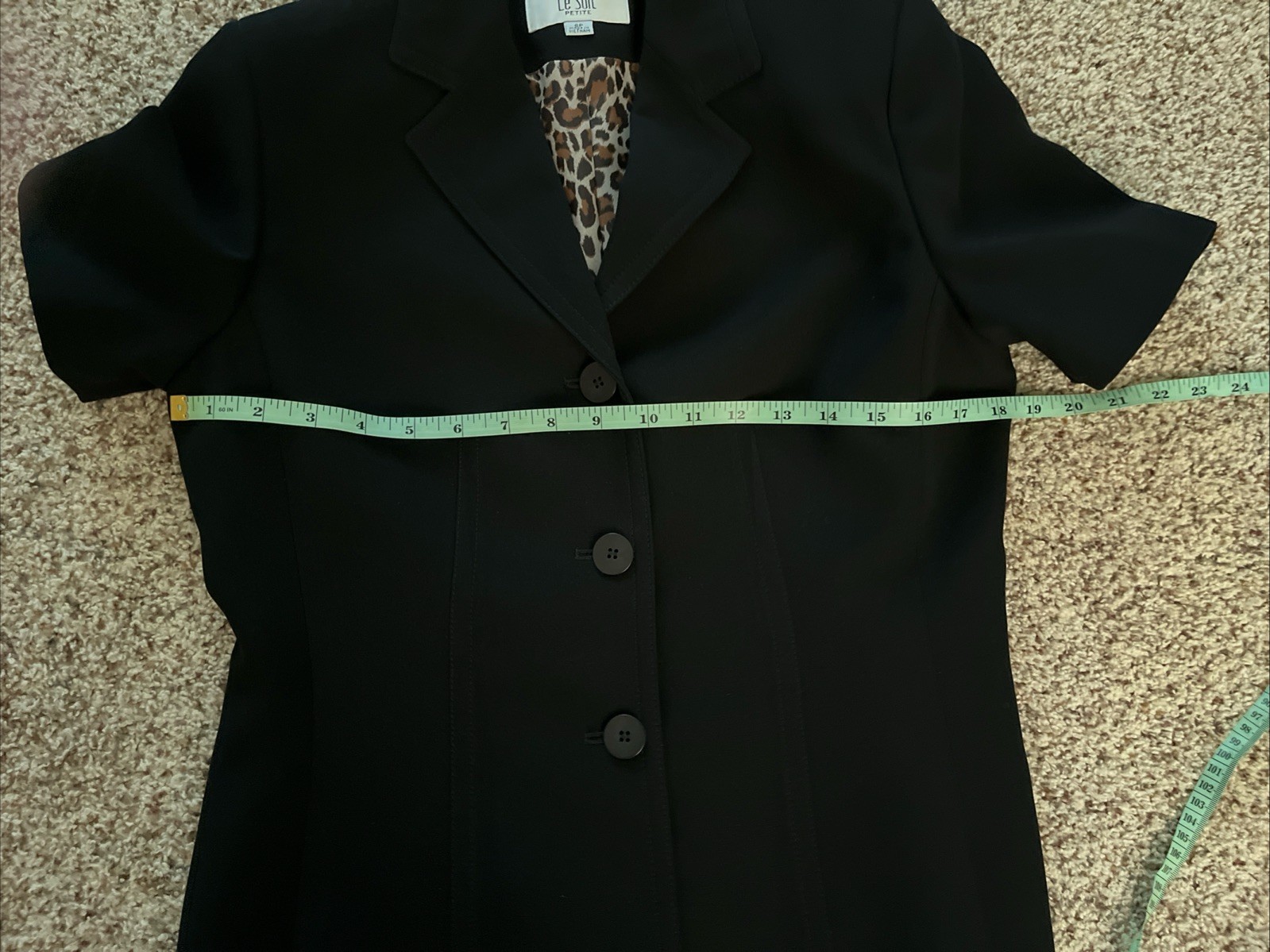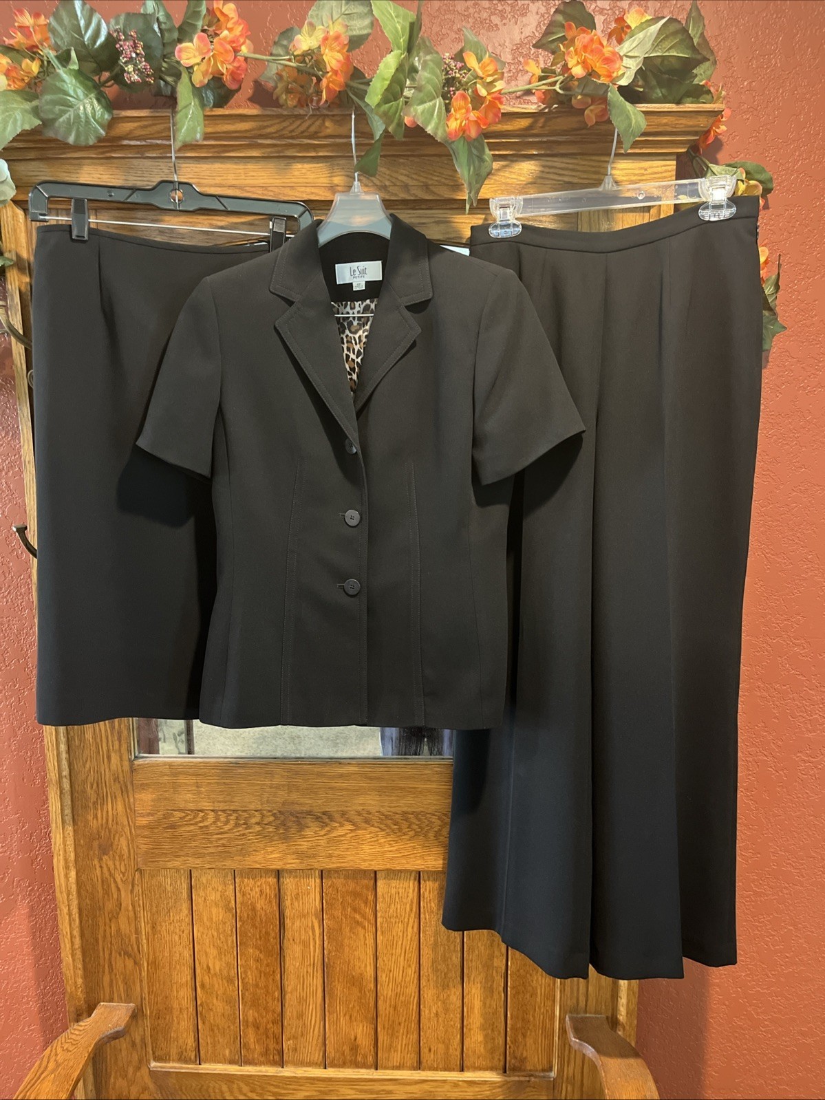 LE SUIT 3 Piece Black Short Sleeve Suit Jacket Skirt Pant Set 6 Petite Career