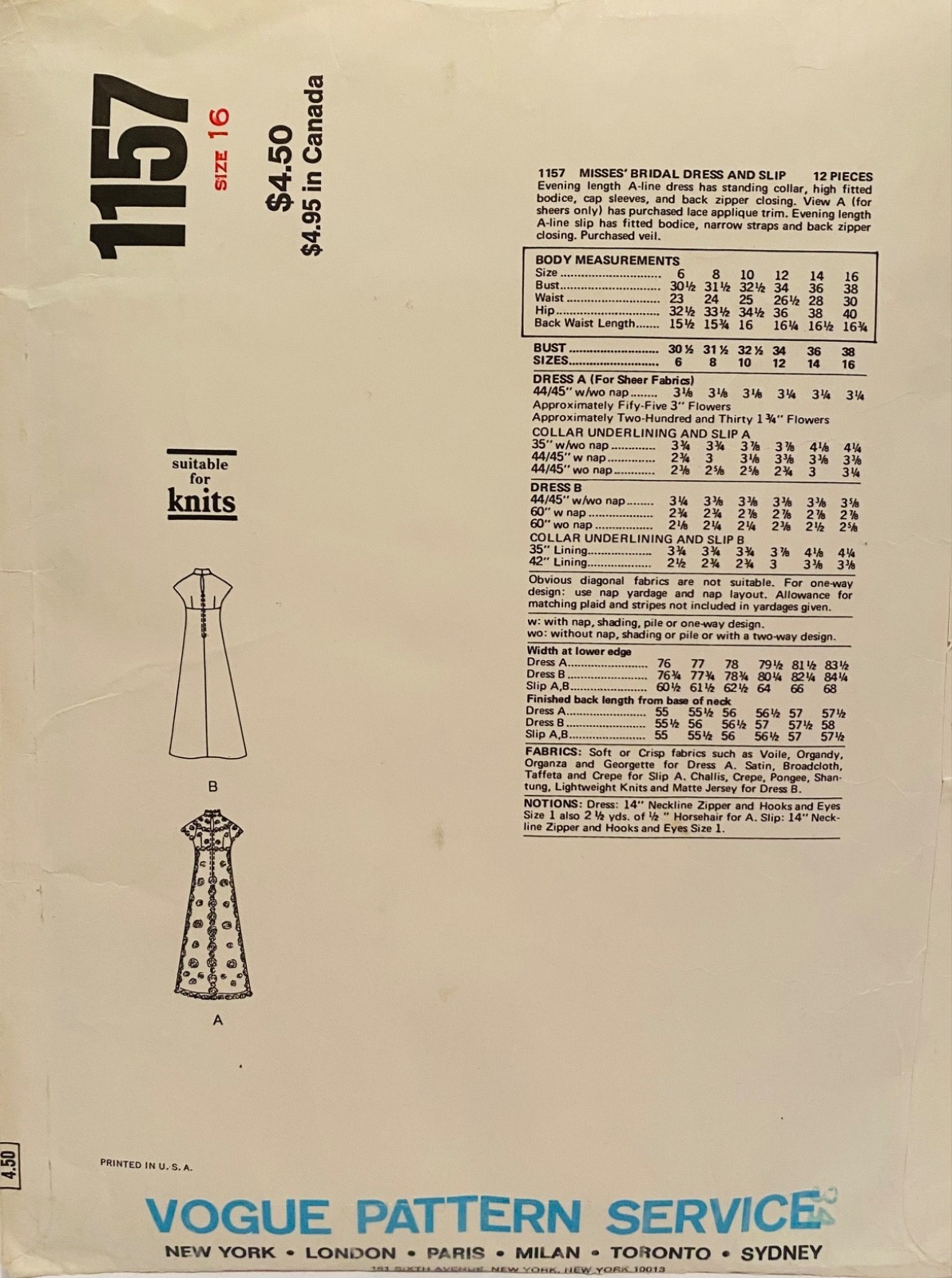 Vogue Bridal Design 1157 Dress, High Collar, Short Sleeves, Maxi, Lace, Size 16