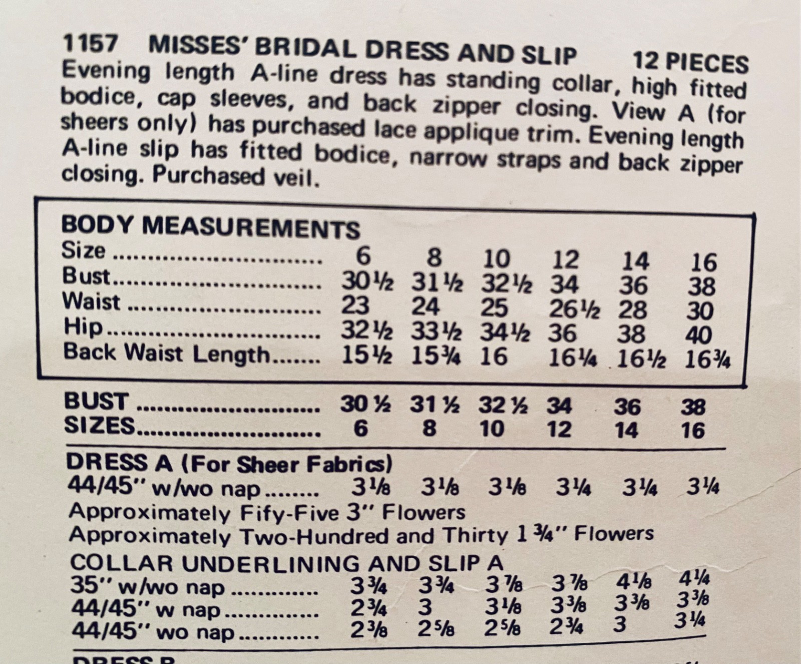 MISSES' BRIDAL DRESS AND SLIP: Evening length A-line dress has standing collar, high fitted bodice, cap sleeves, and back zipper closing. View A (for sheers only) has purchased lace applique trim. Evening length A-line slip has fitted bodice, narrow straps and back zipper closing. Purchased veil.
