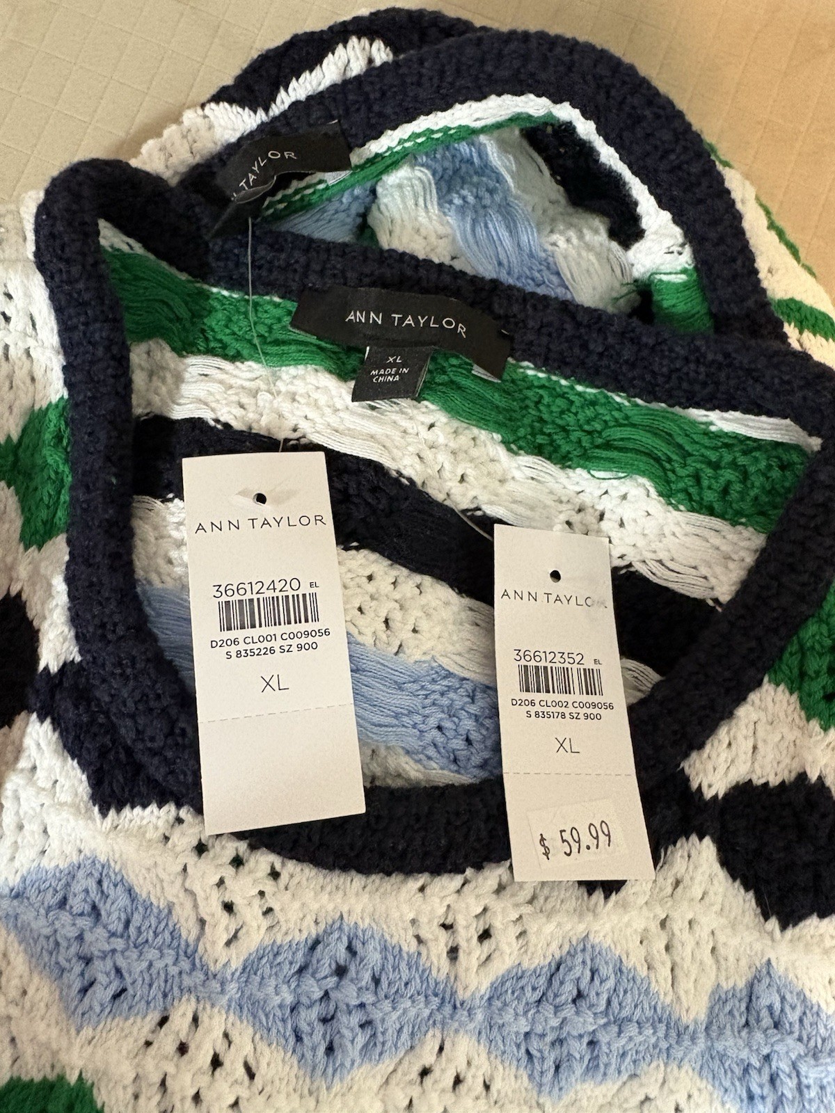NWT Ann Taylor White, Navy, Green, Blue Twin Cardigan & Tank Set Size XL