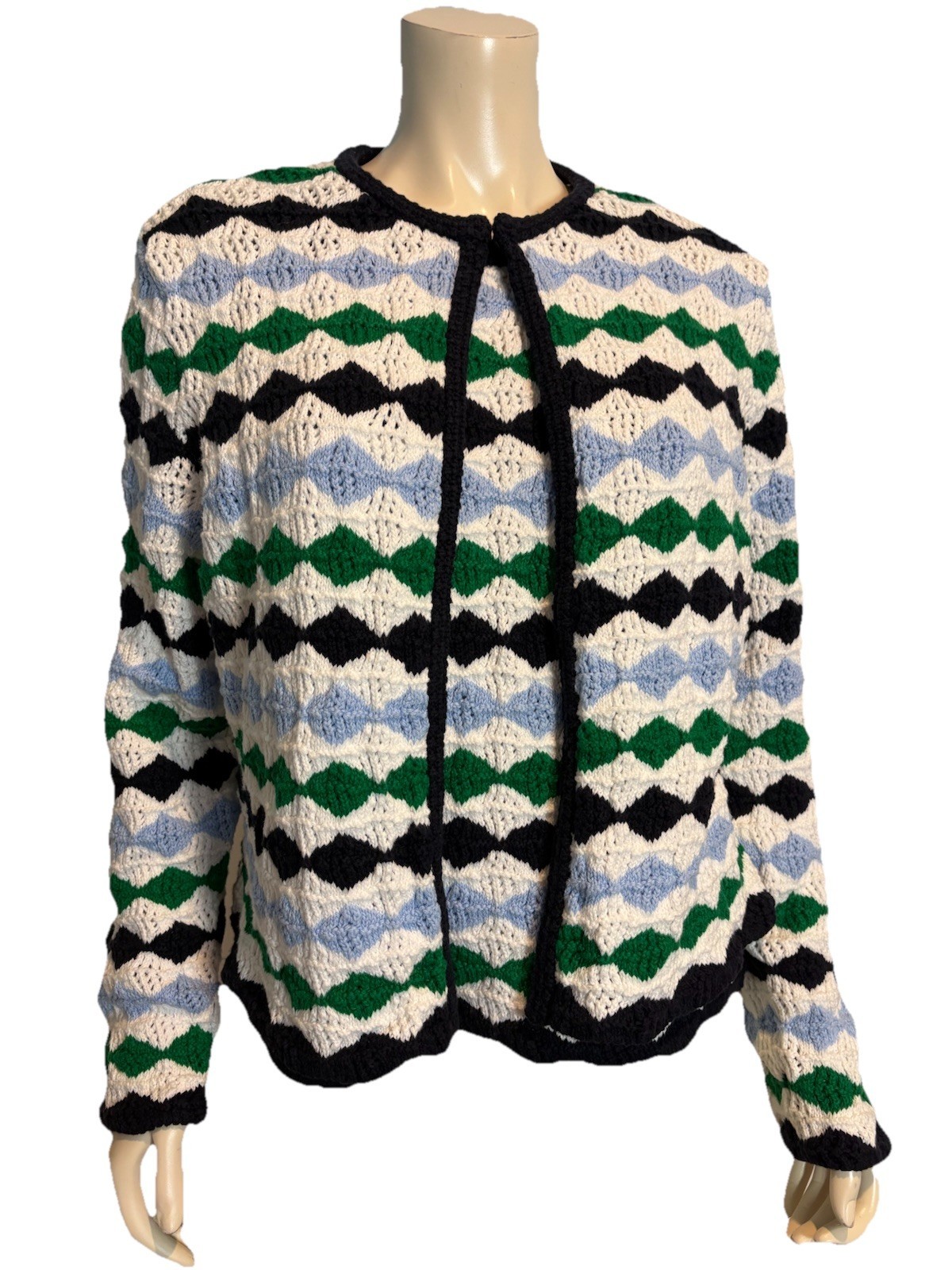 New with tags! Ann Taylor White, Navy, Green, Light Blue Diamond Pattern Sweater Set Cardigan and Tank